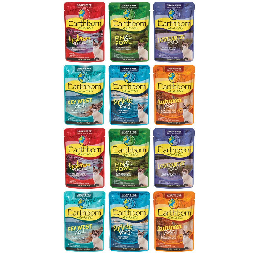 Earthborn Holistic Grain Free Wet Cat Food Pouches, 6 Flavors, 3-Ounces Each (12 Total Pouches)