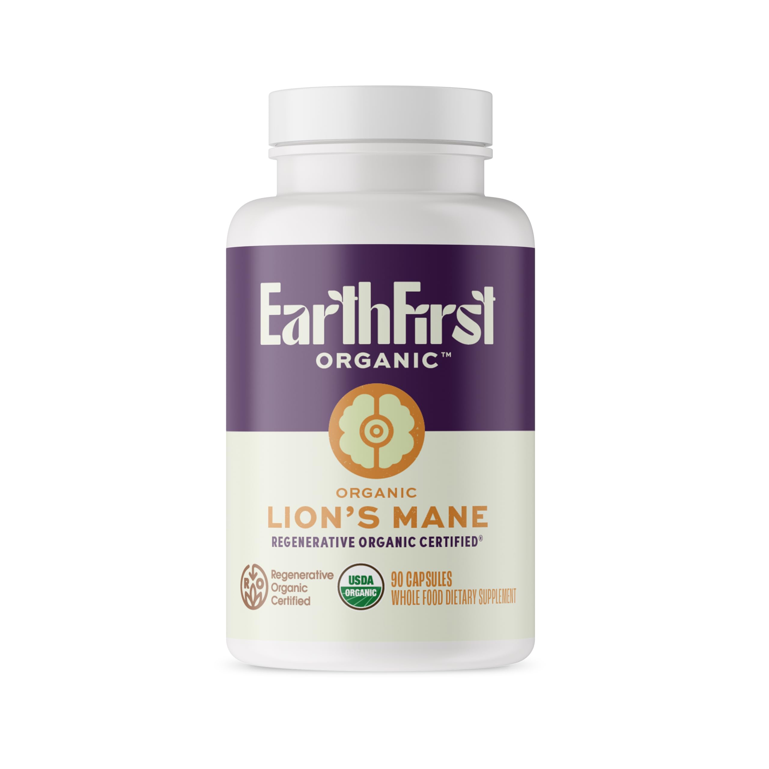 EarthFirst Organic Lion s Mane Regenerative Organic Certified Mushroom Capsules for Focus Memory & Nerve Support Cognitive Clarity and Natural Energy 90 Vegan Tablets