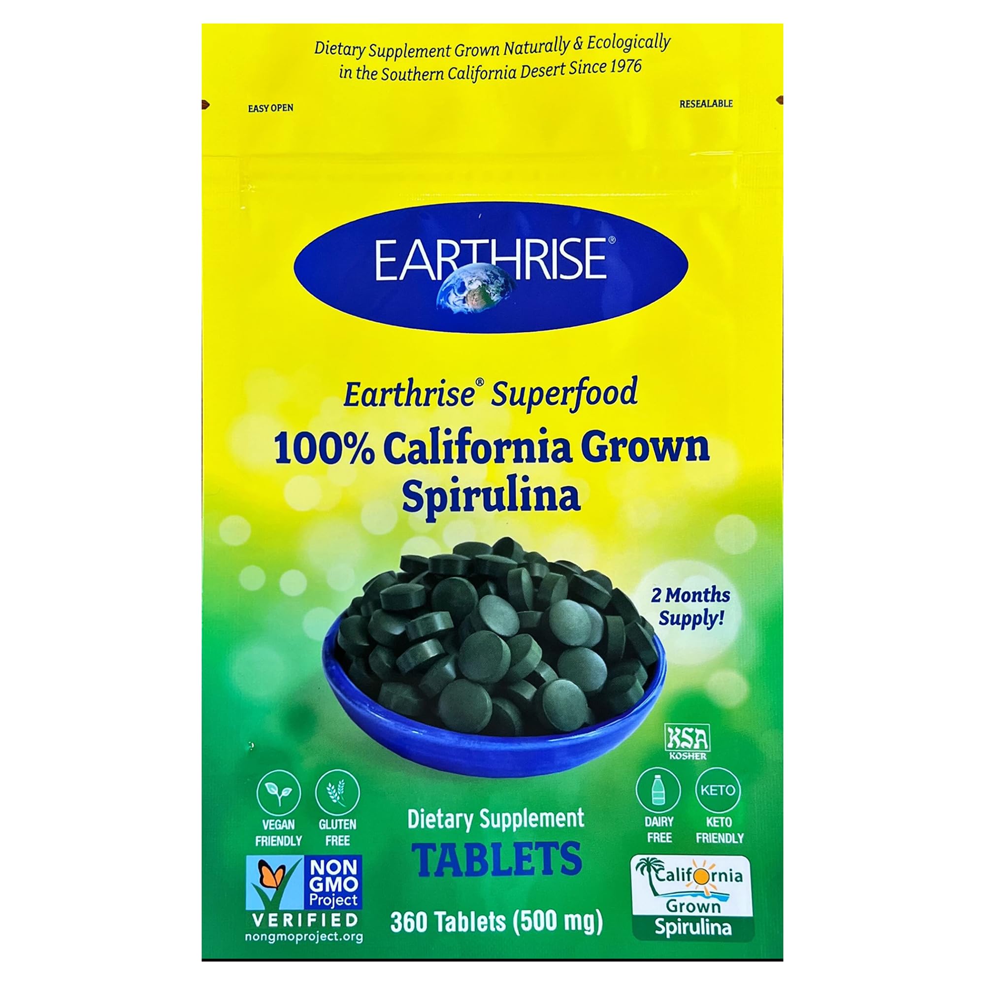 Earthrise Superfood 100% California Grown Spirulina 500mg Tablets (360 Count) Natural Premium Spirulina Vegan Gluten Free Keto Friendly Non -GMO High in Vitamins & Minerals 360 Count (Pack of 1)