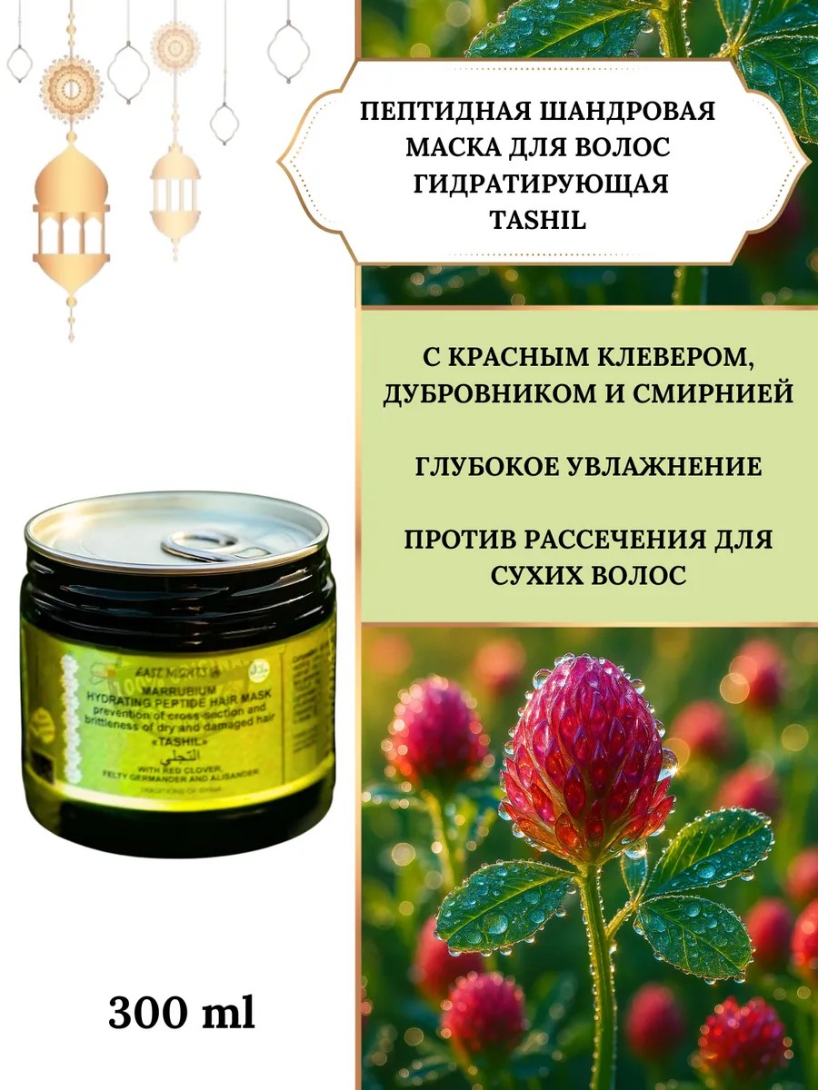 | Full product name | TASHIL Horehound hydrating peptide hair mask for preventing split ends and breakage of dry and damaged hair with red clover, field germander and myrtle "Transfiguration" |