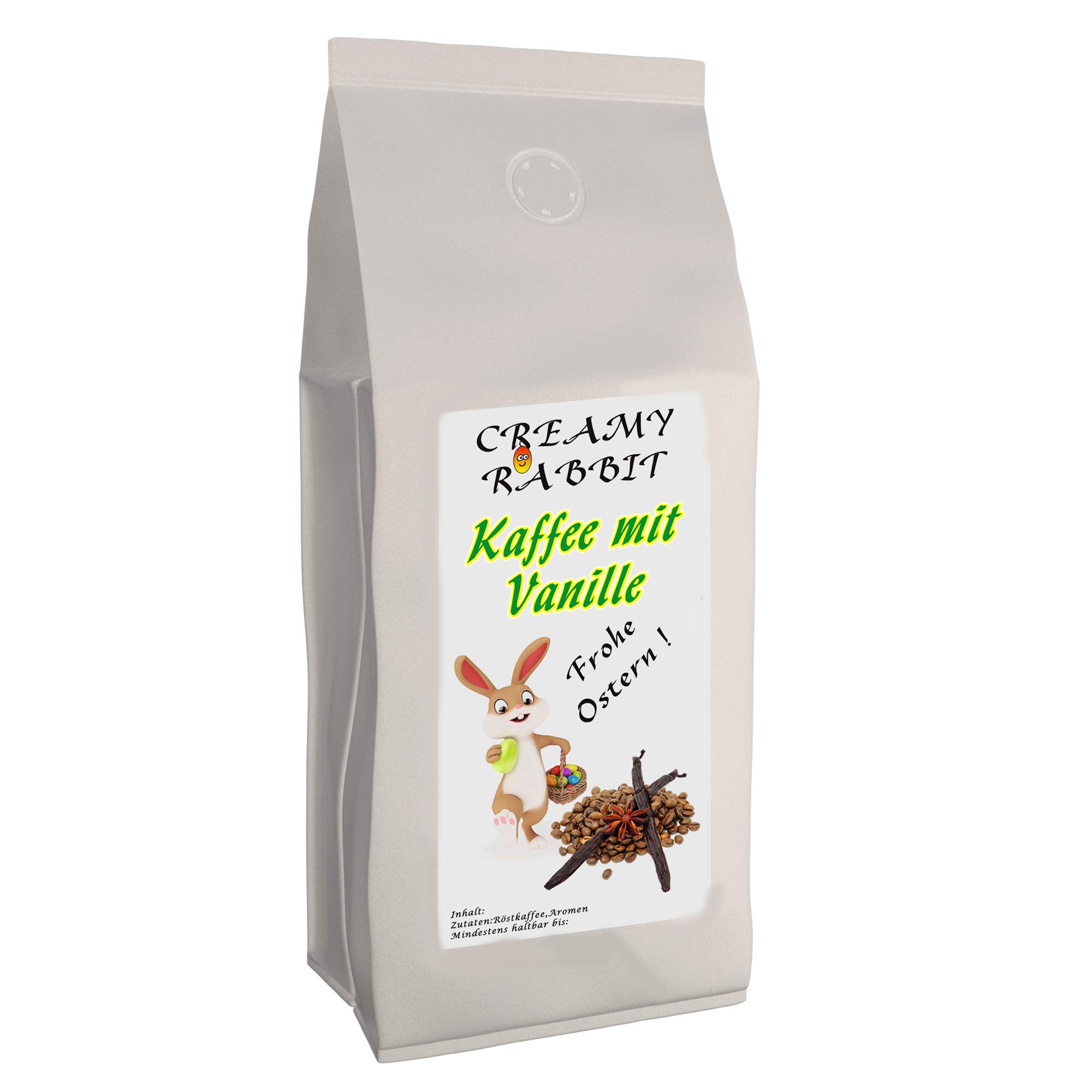 Osterkaffee "Creamy Rabbit" mit Vanille-Geschmack 500 g Ganze Bohnen Aromatisierter Kaffee als Ostergeschenk Flavoured Coffee
