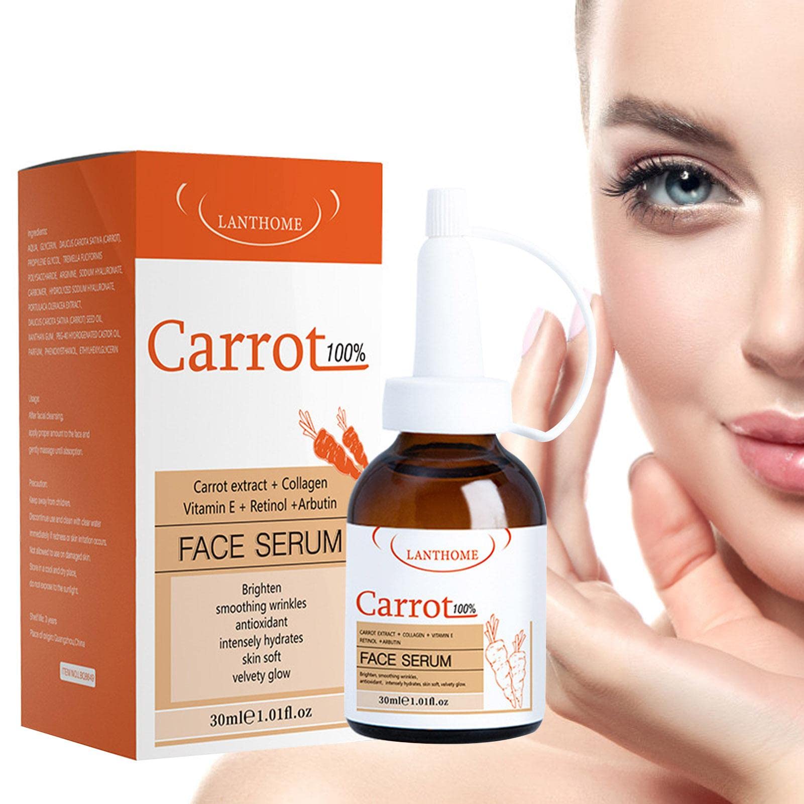 Description: This moisturizing facial essence contains an advanced antioxidant essence, essential nutrients for collagen production, and vitamin E, synergistically blended with botanical hyaluronic acid in this advanced formula. Facial Essence for Women is suitable for most common signs of aging, including dullness, loss of firmness, fine lines, wrinkles, dark spots, and sunspots. Specification: Name: Carrot Face Essence Volume: 30 ml Weight: Approx. 82 g Box Size: Approx. 4.45 x 4.45 x 8.5 cm Package List: 1 Carrot Face Essence Note: 1. Due to lighting effects and shooting angles, there may be a slight color difference in the product. Please understand. 2. Due to manual measurement, there may be a slight tolerance in the product size.?Easy to apply: Cleanses and dries the skin. Apply Dark Spot Essence to areas of skin that need toning, using twice daily, morning and evening, all over the face. ?Dilutes melanin: Facial Essence for Women can dilute melanin, resulting in brighter skin and minimizing the appearance of enlarged pores, leaving skin soft, supple, and protected for a healthy-looking complexion. ?Multiple uses: This moisturizing facial essence is primarily used for the most common signs of aging, including dullness, loss of firmness, fine lines, wrinkles, dark spots, and sunspots. ?Safe and gentle: Carrot Essence for Face uses natural, high-quality ingredients that do not irritate the skin and are very gentle on even the most sensitive skin. ?Advanced Formula: Dark Spot Essence features an advanced formula with vitamin E, an essential nutrient for collagen production, blended synergistically with botanical hyaluronic acid in this advanced formula.Eastuy Essence Visage Carotte,Carotte 30 ML pour Le Visage - Huile Visage Lissante Hydratante, Crème Démaquillante Naturelle Taches BrunesDESCRIPTION DU PRODUIT La description: L'essence hydratante pour le visage contient une essence antioxydante avancée, des nutriments essentiels à la production de collagène et de la vitamine E mélangée en synergie avec de l'acide hyaluronique botanique dans cette formule avancée. Facial Essence for Women convient à la plupart des signes courants du vieillissement, notamment la luminosité, la fermeté, les ridules, les rides, les taches brunes et les taches solaires. Spécification: Nom : Carrot Face Essence Contenance : 30 ml Poids : environ 82g Taille de la boîte : environ 4,45 4,45 8,5 cm Liste de colisage: 1 essence de visage de carotte Noter: 1. En raison des effets d'éclairage et des angles de prise de vue, il y a une différence de couleur dans le produit, veuillez comprendre. 2. En raison de la mesure manuelle, il existe une tolérance dans la taille du produit.?Facile à appliquer : nettoie et sèche la peau. Appliquez Dark Spot Essence sur les zones de la peau qui ont besoin d'être tonifiées, utilisez deux fois par jour, matin et soir, sur tout le visage. ?Diluer la mélanine : Facial Essence for Women peut diluer la mélanine et produire une peau plus lumineuse et réparer les pores dilatés, laissant la peau douce, souple et protégée pour une peau d'apparence saine. ?Nombreuses utilisations : l'essence hydratante pour le visage est principalement utilisée pour les signes de vieillissement les plus courants, y compris la luminosité, la fermeté, les ridules, les rides, les taches brunes et les taches solaires. ?Sûr et doux : Carrot Essence for Face utilise des ingrédients naturels et de qualité qui n'irritent pas la peau et sont très doux pour les peaux les plus sensibles. ?Formule avancée : Dark Spot Essence dispose d'une formule avancée avec de la vitamine E, un nutriment essentiel pour la production de collagène, mélangé en synergie avec de l'acide hyaluronique botanique dans cette formule avancée.