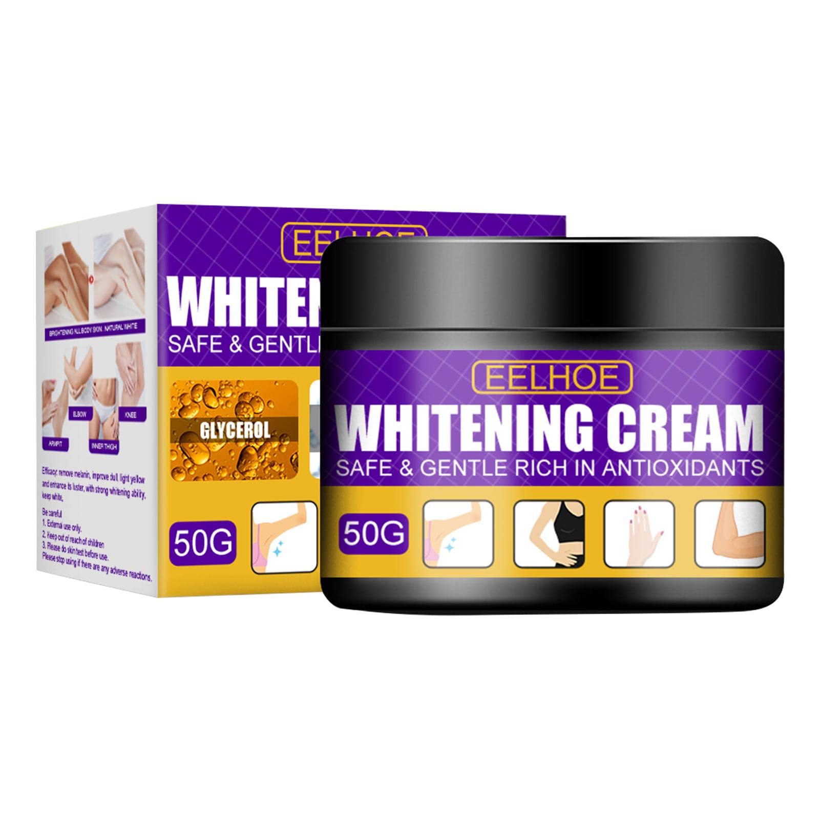 Description: 1. This whitening cream is enriched with whitening and moisturizing ingredients. 2. Removing melanin improves dullness and yellowing, enhancing its whitening capabilities. 3. Leaves skin fair, smooth, hydrated, and elastic. Skin Cream Net Contents: 50g Efficacy: Lightens melanin and brightens skin tone Ingredients: Glycerin, Hydrolyzed Collagen, Aloe Vera Extract Package Contents: 1 Whitening Body CreamWide range of uses: Enhance your natural beauty with this intimate cream. You can use this cream on your underarms armpits, knees, elbows, areola, nipple, neck, lips, and other private areas. Easy to use: Apply the skin-lightening cream to the body or sensitive areas as needed after cleansing or going out, and massage gently until absorbed. Lighten dark areas: Using plant extracts, it lightens dark pigments and hyperpigmentation while enhancing your skin's healthy glow. It is ideal for treating discoloration in all external areas of the body and intimate areas. Brighten skin tone: The underarm whitening cream is rich in whitening and moisturizing ingredients that quickly penetrate the stratum corneum to remove melanin and improve dull skin. High-quality ingredients: We use a gentle formula. This dark spot corrector does not irritate the skin and is extremely gentle on even the most sensitive skin and areas of your body. Make yourself more radiant and attractive.Eastuy Éclaircissement des aisselles Crème blanchissante pour Les aisselles pour Femmes Taches Brunes la Zone Intime avec des résultats instantanés pour Les Genoux, Les CoudesDESCRIPTION DU PRODUIT La description: 1. La crème blanchissante est enrichie d'ingrédients blanchissants et hydratants 2. Supprimer la mélanine améliore le terne, le jaunâtre améliore sa capacité de blanchiment, 3. garder juste, lisse, hydraté et élastique. Crème pour la peau Contenu net 50g Efficacité Éclaircit la mélanine et éclaircit le teint Ingrédients Glycérine, Collagène Hydrolysé, Extrait d'Aloe Vera Liste: 1 crème blanchissante pour le corps?Large utilisation : améliorez votre beauté naturelle avec cette crème intime. Vous pouvez utiliser cette crème sur vos aisselles aisselles, vos genoux, vos coudes, votre aréole, votre mamelon, votre cou, vos lèvres et d'autres zones privées. ?Simple à utiliser : crème éclaircissante pour la peau Appliquer la crème sur le corps ou les régions sensibles selon les besoins après le nettoyage ou de sortir, et masser doucement jusqu'à absorption. ?Éclaircir les zones sombres : à l'aide d'extraits de plantes, éclaircit les pigments sombres et l'hyperpigmentation tout en renforçant l'éclat sain de votre peau. il est idéal pour traiter la décoloration dans toutes les zones externes du corps et les zones intimes. ?Illuminez le teint de la peau : la crème blanchissante pour les aisselles est riche en ingrédients blanchissants et hydratants qui pénètrent rapidement dans la couche cornée pour éliminer la mélanine et améliorer la peau terne. ?Ingrédients de qualité : Nous utilisons une formule douce. Ce correcteur de taches brunes n'irrite pas la peau et est extrêmement doux pour les peaux et les zones les plus sensibles de votre corps. Se rendre plus rayonnant et attirant.