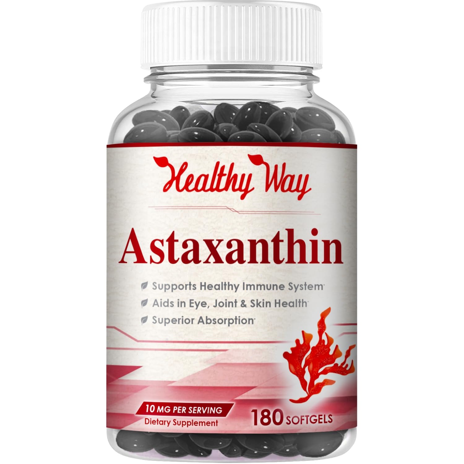 Easy Absorption Astaxanthin Supplement - 10mg Astaxanthin from Haematococcus Pluvialis Fresh Microalgae for Skin and Eye Health Support - Rich in Antioxidants and Carotenoids (180 Servings)