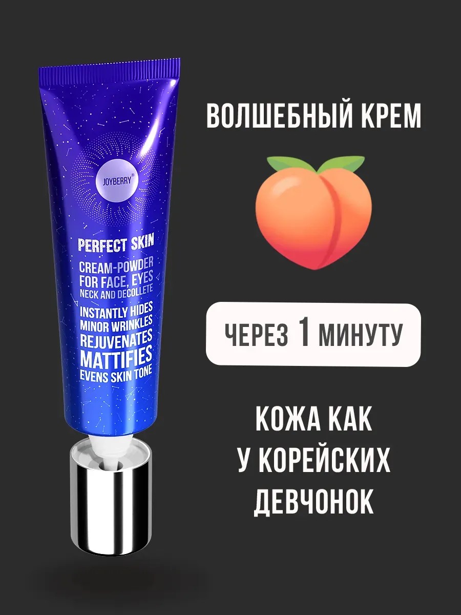 Лёгкий антивозрастной матирующий крем для лица против морщин PERFECT SKIN станет твоим надежным партнером в достижении совершенства. Омолаживающий крем пудра имеет лёгкую текстуру, похожую на флюид, густую сыворотку, или крем гель для лица. Моментально впитывается, не оставляя следов жирного блеска на лице. Обеспечивает матовый эффект до 24 часов и превращает кожу в бархатистую и молодую. Крем лифтинг помогает от отёков и мешков под глазами, с лёгким эффектом ботокса. Действует как крем филлер, заполняет мелкие морщинки. Пептиды в составе, в том числе SYN-AKE, активно разглаживают мелкие морщины, создают подтягивающий лифтинг эффект и повышают упругость. Способствуют выработке коллагена и эластина. Гиалуроновая кислота, натуральные экстракты, алоэ и создают омолаживающий, успокаивающий, увлажняющий и восстанавливающий эффекты. Подходит для ухода за кожей лица, для век, области вокруг глаз, шеи и зоне декольте. Крем филер от морщин может использоваться как ночной так и дневной крем. Наше косметическое средство идеально подходит для жирной, нормальной и комбинированной кожи. Подходит для проблемной и чувствительной кожи, как для женщин, так и для мужчин. Обладателям сухой кожи сначала рекомендуется нанести сыворотку, масло для лица или другой увлажняющий крем. Пептидный крем слегка сужает и скрывает поры, уменьшает видимость чёрных точек. Подходит как база под макияж или праймер. Но стоит учитывать, что плотный тональный крем может не подойти, поэтому лучше использовать лёгкий BB крем. Крем сыворотка для лица подходит в качестве уходовой косметики для подростковой, молодой, зрелой и пожилой возрастной кожи, 14+ 30, 40, 50 и 60 плюс. Теперь не нужно искать корейский крем или корейская косметика. Наш профессиональный крем содержит компоненты высочайшего качества. Позволь себе этот шаг к красоте и уверенности – заказывай прямо сейчас и погрузись в мир безупречности от JOYBERRY.