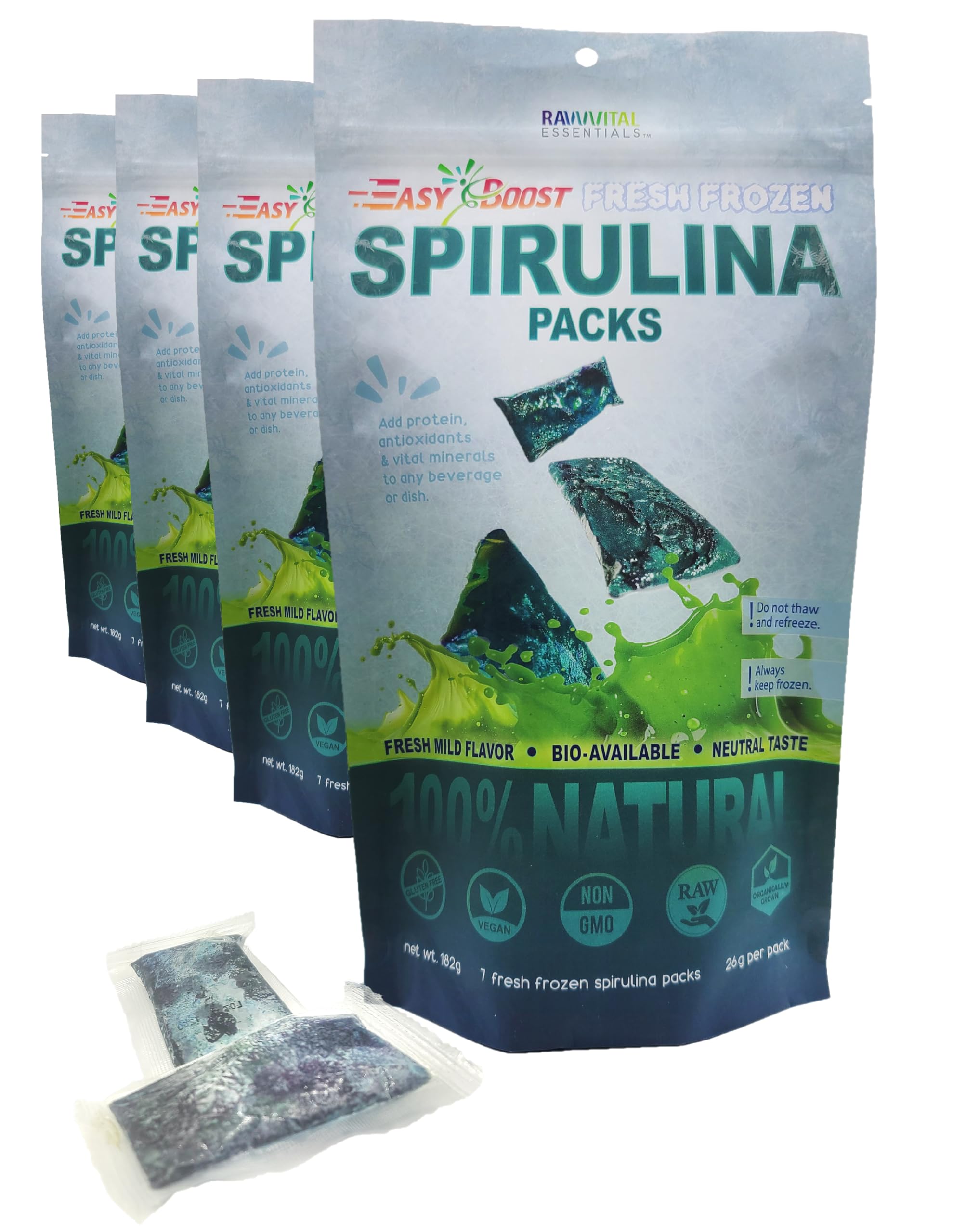 5 Calories per serving. Dense in essential nutrients. Bio-Available. Instantly boost any beverage or dish with protein, antioxidants and vital minerals with organically grown, freshly-frozen Spirulina packs.Wholesome Vegan Gluten-Free Option Designed to suit diverse dietary needs, our sustainably grown fresh frozen-Spirulina packs provide a pure, plant-based alternative to traditional powders. Ideal for anyone seeking a nutritious, holistic, vegan, keto friendly, and or gluten-free addition to their daily routine. Nutrient Packed Bio-Available Power up with 8g of fresh raw Spirulina per serving. Our fresh-frozen Spirulina packs retain more nutrients than powdered alternatives and are bioavailable making them more readily absorbed by the body, maximizing nutrient uptake. ?An Easy Boost for Energy?Whether you're at home or on the go, our fresh frozen Spirulina packs make it simple to fuel your day with instant nutrition. Just drop a pack into your juice or smoothie for a quick, effortless way to boost your routine. ?A Nutrient Boost in Every Pack?At only 5 calories per pack, our fresh frozen Spirulina packs are loaded with essential vitamins, minerals and antioxidants, providing a convenient, nutrient-rich alternative to traditional Spirulina powder. Each pack contains protein, Phycocyanin, Chlorophyll, Calcium, Magnesium, B vitamins, Beta-Carotene, Iron, Potassium and Gamma-Linolenic Acid to keep you naturally energized and thriving. ? Mild Fresh Flavor and Smooth Silky Texture ? Savor the pure essence of Spirulina without the strong taste or smell often found in powders. Our fresh frozen Spirulina packs easily mixes with juices, smoothies, dips, dressings and dishes to add a smooth silky texture that's a delight to enjoy.