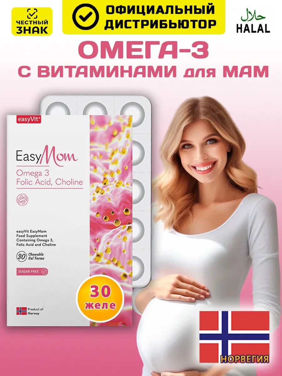 EasyMom EasyVit — витаминный комплекс с Омега-3, витамином D3 и фолиевой кислотой для беременных и кормящих женщин