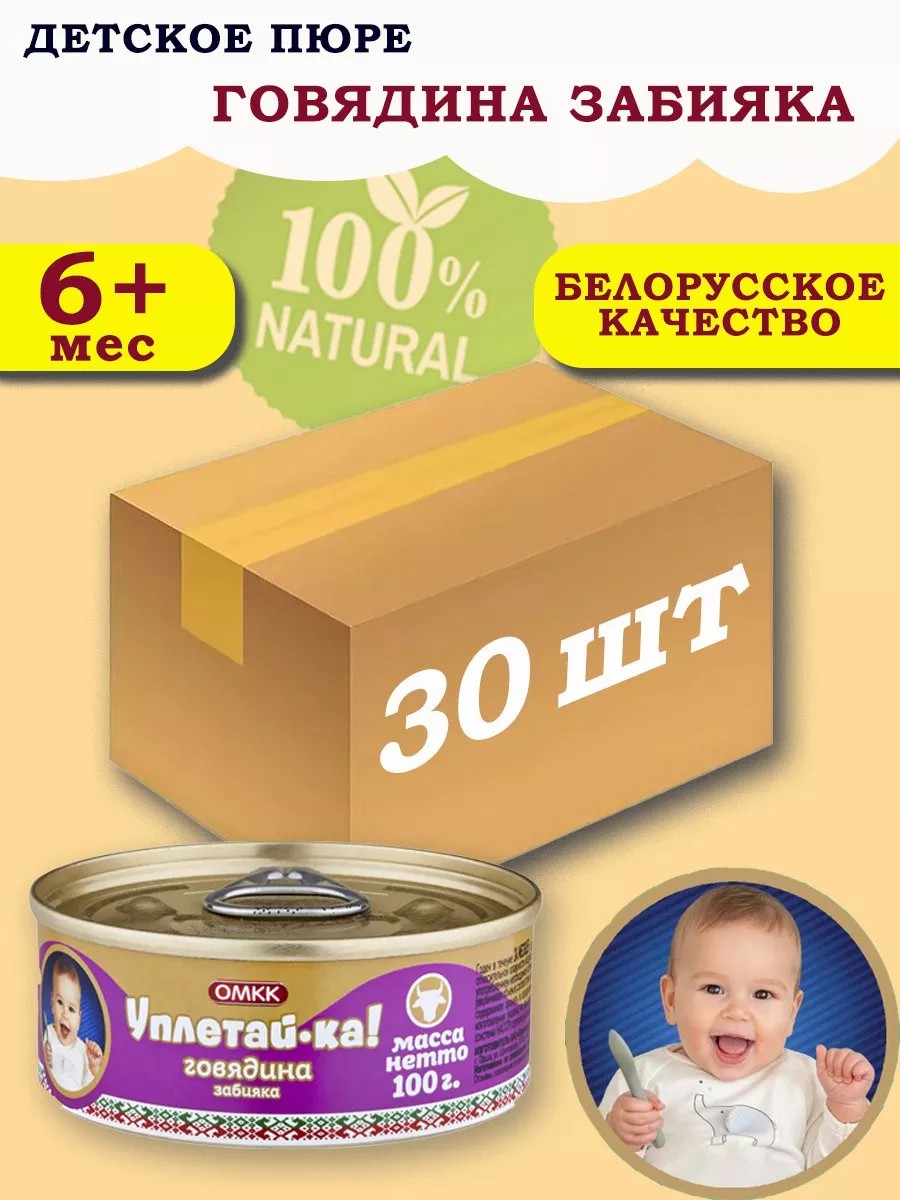 Уплетай-Ка! Пюре детское говядина забияка 100гр 30 шт