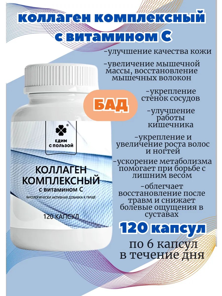 Едим с пользой коллаген комплексный - это биологически активная добавка к пище, содержащая коллаген гидролизованный (говяжий) и витамин С.