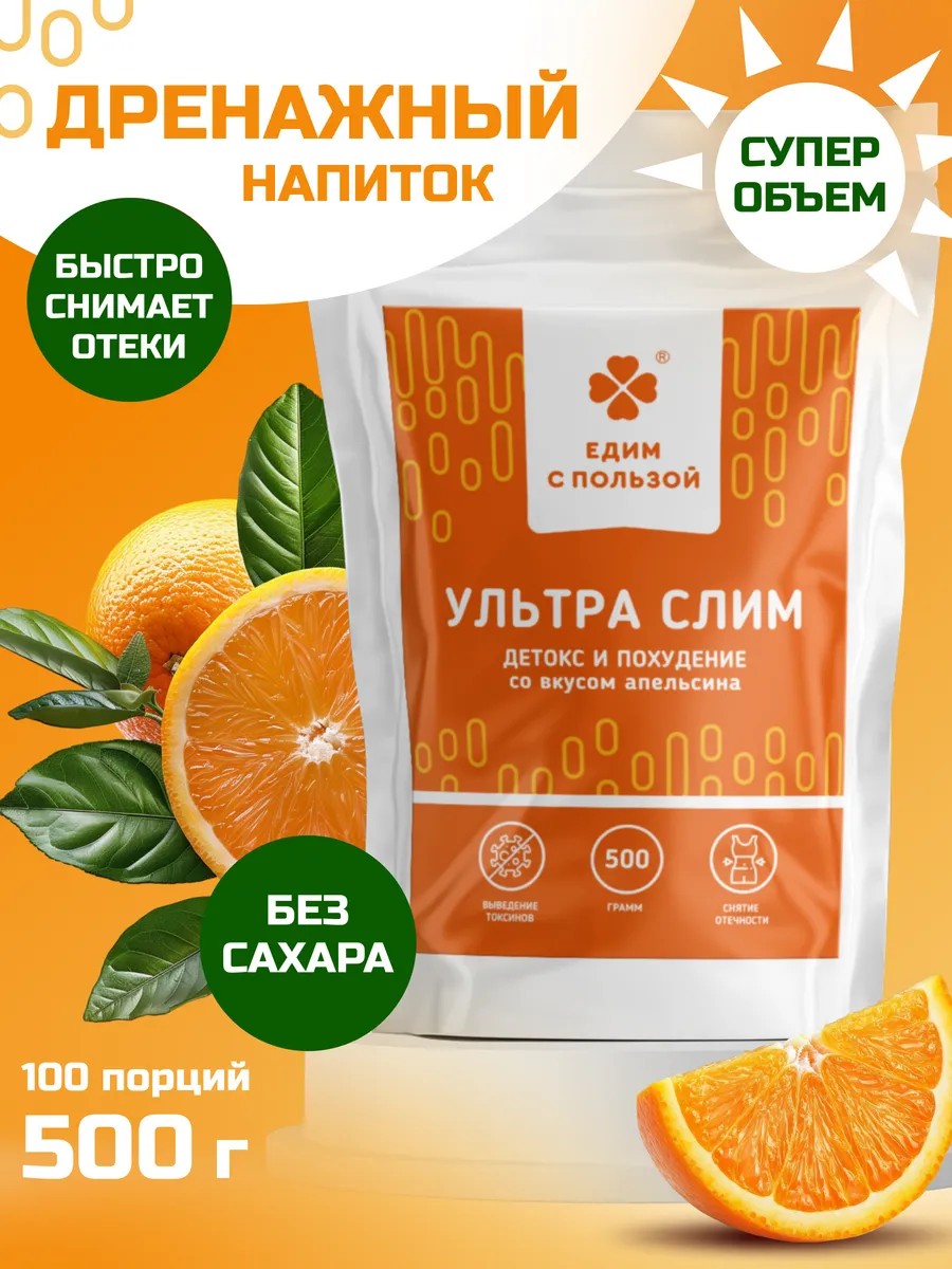Едим с пользой Дренажный напиток для похудения от отеков апельсин, 500гр