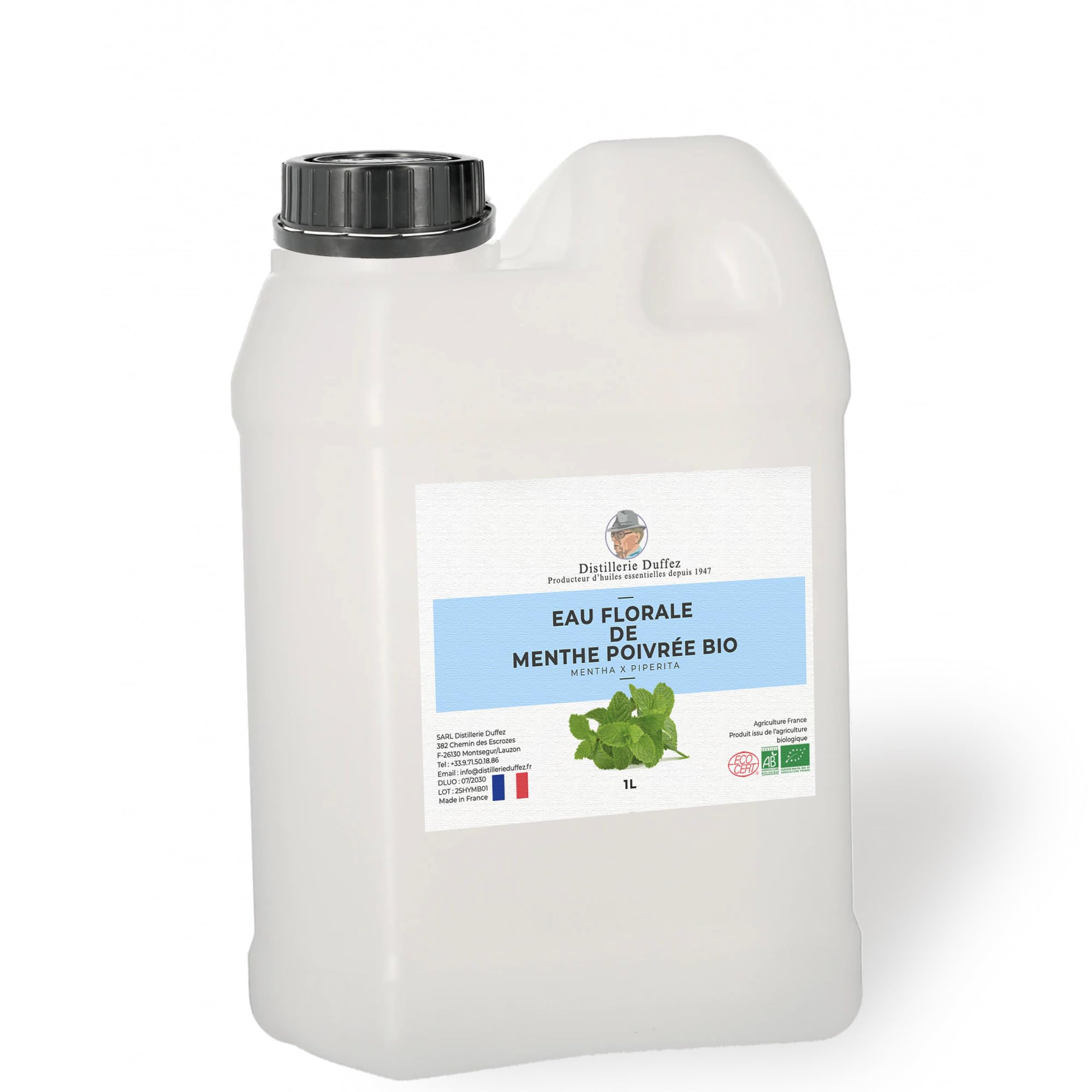 Eau florale de Menthe Poivrée Bio 1 Litre - Hydrolat 100 Pur et Naturel - Direct producteur en Drôme Provençale