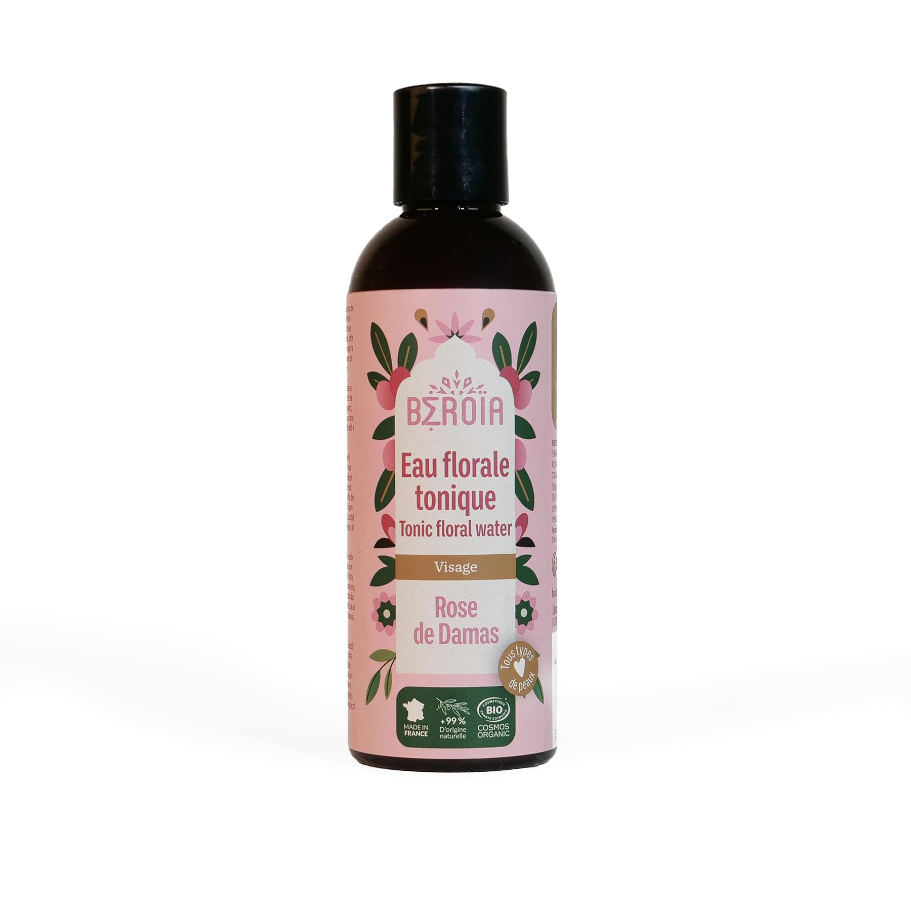 Made with organic ingredients, 99.6 of its composition is of natural origin. Apply daily to clean, dry skin. Made in France at Laboratoire Najjar and COSMOS ORGANIC certified.Élaboré à partir d'ingrédients biologiques, 99,6 de leur composition est d'origine naturelle. Appliquez quotidiennement, sur une peau propre et sèche. Fabriqué en France au sein du Laboratoire Najjar et certifié COSMOS ORGANIC.Eau florale de rose Bio - COSMOS ORGANIC - Tous types de peau - Tonique pour le visage - Fabriqué en France - 200ml - BEROIA