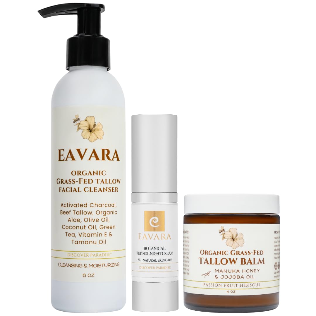 Blackhead Remover Makeup Remover: This organic face wash, infused with aloe vera and green tea, acts as a blackhead remover and makeup remover, ensuring a thorough cleanse. Its gentle formula, enriched with beef tallow, leaves your skin feeling hydrated and refreshed. Original Skin Superfood: Rich in vitamins A, D, E, and K, grass-fed beef tallow deeply nourishes the skin with nutrients your body recognizes. Its structure is similar to your skin's natural oils, allowing for fast absorption and long-lasting hydration. Unlike water-based lotions, tallow locks in moisture without clogging pores or leaving a greasy residue. This time-tested remedy supports skin barrier function and promotes a smooth, healthy glow. Gentle and Natural: We paired Retinol with Organic Aloe Vera, Organic Shea Butter, Organic Coconut Oil, Vitamin E, and Organic Honey to ensure a well-rounded approach to restoring your youth and preserving your skin's natural radiance. Nature's Skin Care: Manuka honey is a natural powerhouse perfect for calming irritation, redness, or blemishes. Beeswax acts as a breathable barrier to seal in moisture and protect against environmental stress. Together, they support healing, hydration, and daily skin defense—making this balm ideal for those with dry, reactive, or damaged skin in need of gentle yet effective care. Beef Tallow Activated Charcoal: Harness the power of beef tallow and activated charcoal in our facial cleanser. This face wash effectively purifies pores and absorbs impurities, offering a comprehensive clean while maintaining skin's natural moisture balance.