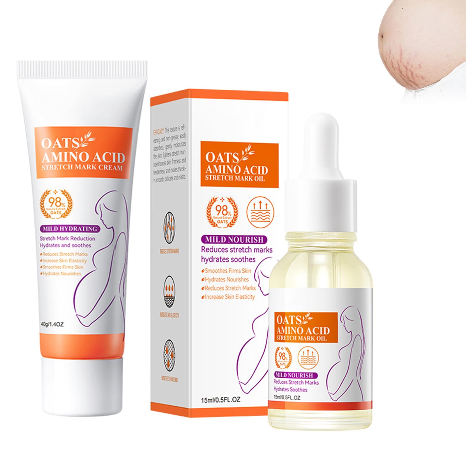 Four Soothing Effects : Our stretch mark oil has multiple benefits: it reduces the appearance of stretch marks, improves skin elasticity, soothes dry and itchy skin, and controls the regeneration of stretch marks. It can also smooth rough skin and intensely moisturize it. Long-lasting hydration: up to 48 hours of hydration with just one application. The rich, soothing formula melts into the skin to lock in moisture, forming a barrier that provides lasting relief from dryness without the need for frequent reapplication. Enjoy soft, moisturized skin all day and night. Enjoy Smooth, Soft Skin : Revitalize your skin with this stretch mark cream. Our preventative pregnancy care cream contains oatsaminoacid, jojoba, and sunflower oils, which work together to deeply moisturize and soothe your skin. Stretch Mark Oil : Our pregnancy oil is specially formulated to protect delicate skin during pregnancy. This anti-stretch mark oil can effectively address various skin concerns and help improve elasticity. Stretch Mark Cream : Helps visibly reduce the appearance of stretch marks and old scars by supporting skin renewal with oat extract. Ideal for areas affected by pregnancy, growth, or weight fluctuations, this cream promotes a smoother texture and more even skin tone when used consistently on the stomach, thighs, hips, or arms.Eazerom Crème vergetures huile vergetures, avec avoine, crème anti-stretch marks, lotion pour l'élimination des étirements, renforce l'élasticité de la peau et aideQuatre effets plus apaisants : Notre huile pour vergetures a de multiples avantages : atténue les vergetures, améliore l'élasticité cutanée, apaise la peau sèche et démangeaisons et contrôle la régénération des stries. Il peut également lisser la peau rugueuse et l'hydrater intensément. Hydratation longue durée : jusqu'à 48 heures d'hydratation avec une seule application. La formule riche et apaisante se dissout sur la peau pour bloquer l'humidité, formant une barrière qui soulage la peau sèche durable sans avoir besoin de réapplications fréquentes. Profitez d'une peau douce et hydratée toute la journée et la nuit. Profitez d'une peau lisse et douce : Revitalisez votre peau avec cette crème pour vergetures. Notre crème préventive de soins de grossesse contient de l'OATSAMINOACID, du jojoba et des huiles de tournesol, qui travaillent ensemble pour hydrater en profondeur et apaiser votre peau. Huile pour vergetures : Notre huile de grossesse est spécialement formulée pour protéger la peau fragile pendant cette période. Cette huile anti-vergetures peut résoudre efficacement divers problèmes de peau et aider à améliorer son élasticité. Crème pour les vergetures : aide à réduire visiblement l'apparence des vergetures et des vieilles cicatrices, en soutenant le renouvellement cutané avec l'avoine. Idéal pour les zones touchées par la grossesse, la croissance ou les changements de poids, cette crème favorise une texture plus lisse et un ton plus uniforme si elle est utilisée constamment sur le ventre, les cuisses, les hanches ou les bras.