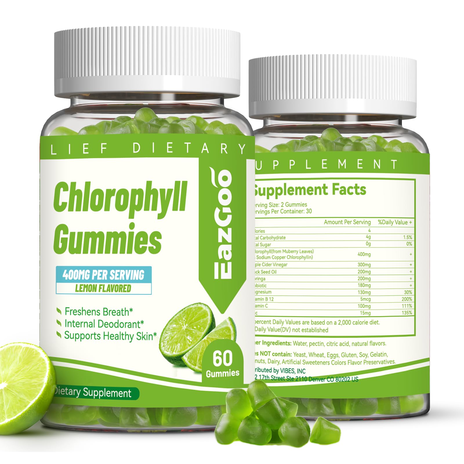 Natural Lemon Flavor - Chlorophyll gummies are pectin-based and gentle to the stomach. No bitter taste. Elevate your health and energy with no hassle!. For Most Lifestyles - Sugar-Free, Gelatin-Free, Gluten-Free, Soy-Free, Wheat Yeast-Free, Vegan, Artificial Color Flavoring-Free. For Body Odor Gut Cleanse - No more hard-to-swallow chlorophyll pills or capsules. Just two delicious and chewable chlorophyll with faster absorption daily can improve internal odor , promote healthy digestion, nurture your gut, and reveal radiant skin . Powerful Immune-Boosting Formula - Our chlorophyll gummies are packed with maximum nutritional benefits into one super green blend gummy(Vitamin C, B12, Magnesium, Zinc, Probiotics, and so on) that works as an internal deodorant to keep you feeling fresh and build a stronger immune defense in long run. Unlock Green Power for a Whole-Body Detox - Sugar-free chlorophyll gummies provide clean, sustained energy to your body. Packed with nutrients that promote focus and reduce fatigue.Tasty chlorophyll gummies give you a fresh body and healthy skin.