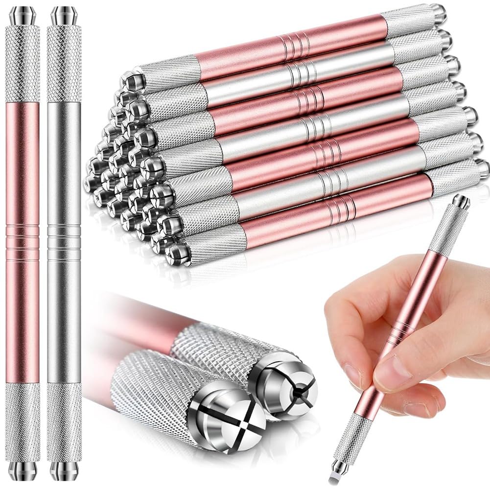 ecaqlin Kind tips: There are slight errors due to manual measurement, please understand. Colour:Silver Pink Material:Aluminum Alloy Package Contents: 1 set x microblading eyebrow pen Only the above package content, other products are not included. Note: Light reflection and different displays may cause the color of the item in the picture a little different from the real thing. The measurement allowed error is - 1-3cm.These microblading handles are waterproof, extending the lifespan and keeping tools clean Convenient design ensures they are easy to clean, providing you with a hygienic makeup tool Available in attractive silver and pink, adding an aesthetic touch to the user Add an attractive touch of beauty to your beauty toolbox. The double-sided microblading pen is easy to hold and use, and can conveniently lock most types of blades, such as round blades, U-shaped blades, etc. Designed with a diamond frosted textured pattern to facilitate smooth between your hand and the pen A firm grip between them, which not only ensures a safe and secure hold, but also improves accuracy. Constructed with aluminum alloy that 't rust or warp easily, these brow-shaped microblading pens are long-lasting and comfortable to hold, ensuring an effortless and smooth microblading experience. Our microblading eyebrow pencil easily locks into various types of blades, simply place the blade and tighten to provide extra security, convenience and accuracy removable, design, provides multiple Functional easy to install and remove, suitable for both beginners and skilled practitioners. There are 30 double-sided microblading pens to meet your usability needs the double-sided design of these microblading pens allows for easy locking of the blades, increg efficiency and better tool use this microblading pen is perfect for learning Brow, lip and eyeliner enthusiast makes a great gift for a co-worker, friend or family member interested in makeup and beauty.