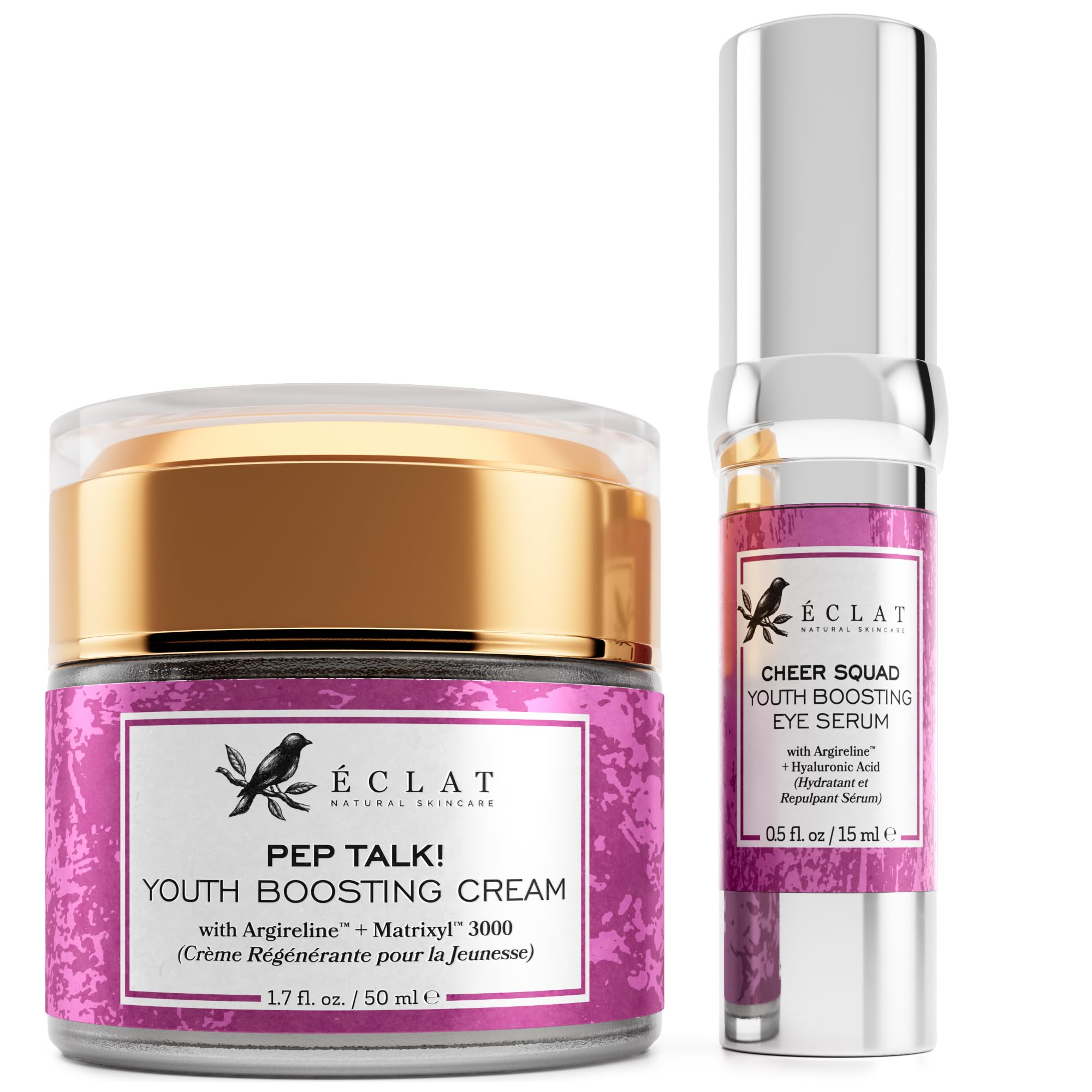 Eclat Anti-Aging Duo - Collagen Youth Boosting Face Cream 17 fl oz and Under Eye Serum 0.5 fl oz for Anti Aging and Moisturize Skin