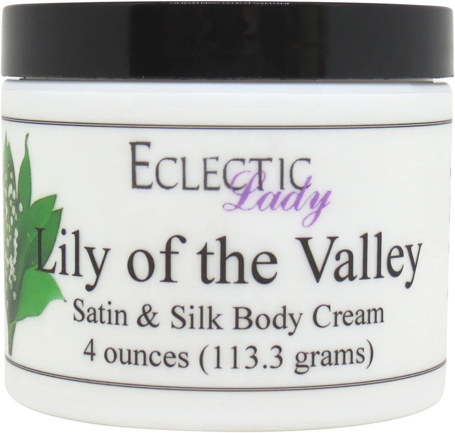 Eclectic Lady Lily Of The Valley Satin and Silk Cream Body Cream Body Lotion 4 oz - Shea Butter Aloe Silk Amino Acids Vitamin E Phthalate-Free Handcrafted in USA - Perfect For Women 4 Ounce (Pack of 1)