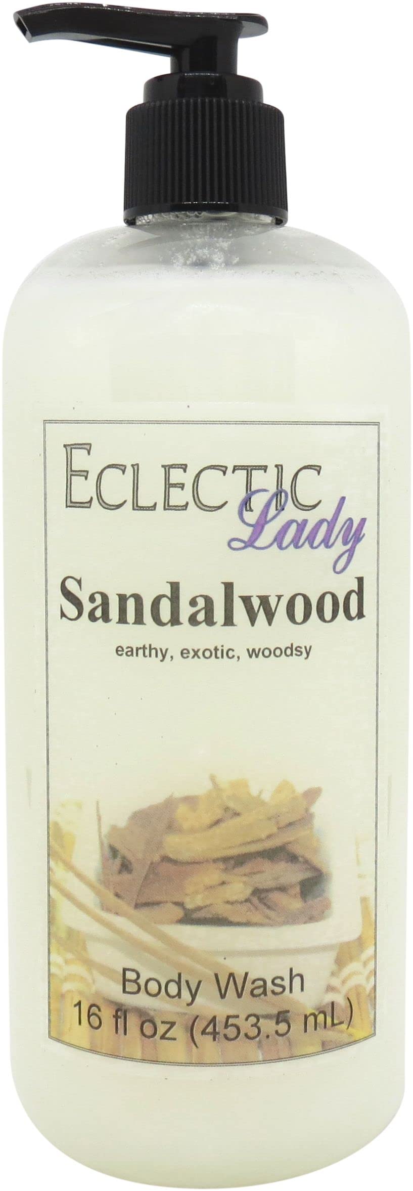 Eclectic Lady Liquid Pearl Body Wash - Sandalwood Scent 3-in-1 Use For Bubble Bath Hand Soap & Body Wash Phthalate-Free Sandalwood Fragrance Handcrafted in USA (16 oz) 16 Fl Oz (Pack of 1)