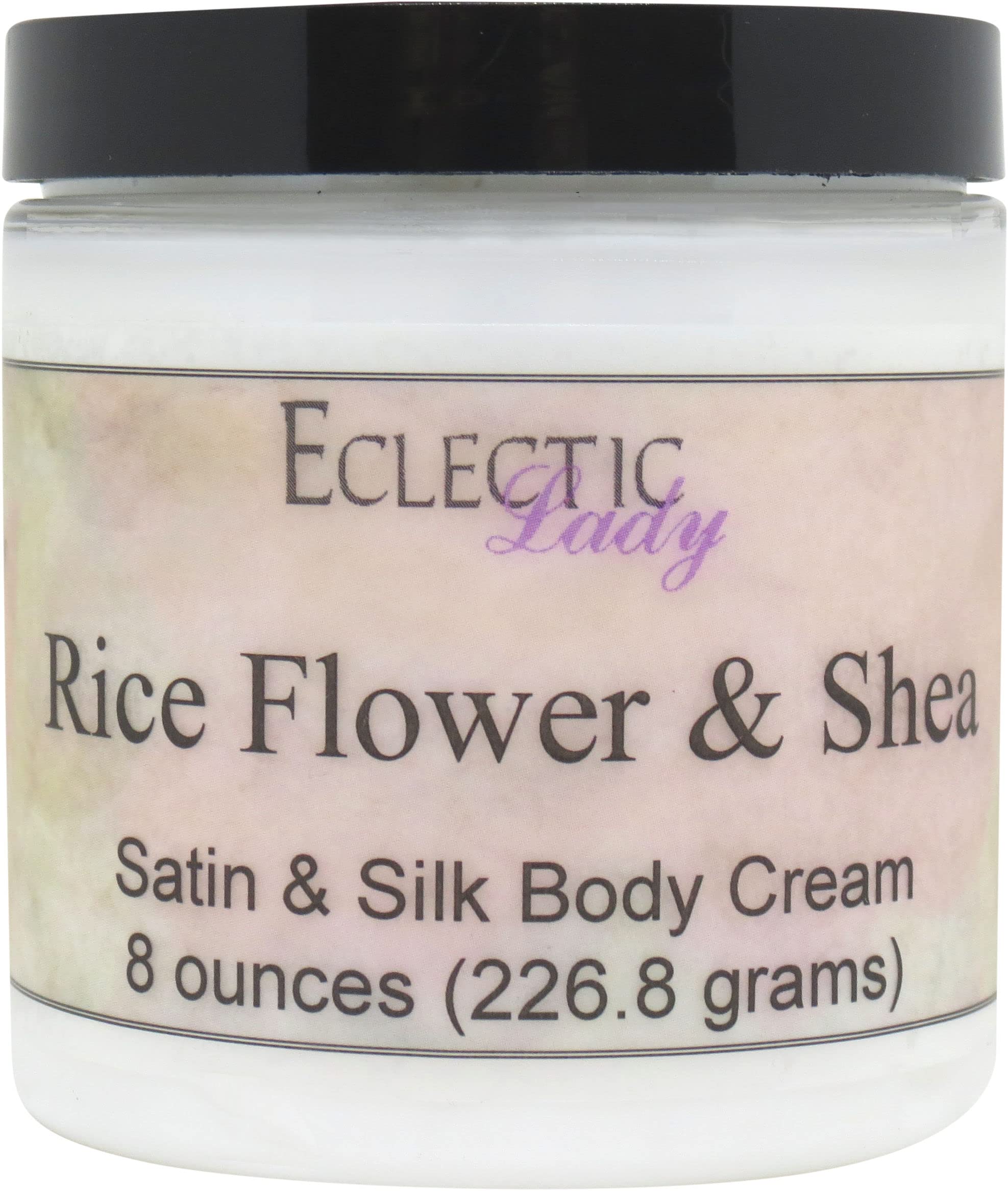 Eclectic Lady Rice Flower and Shea Satin and Silk Cream Body Cream Body Lotion 8 oz - Shea Butter Aloe Silk Amino Acids Vitamin E Phthalate-Free Handcrafted in USA - Perfect For Women 8 Ounce