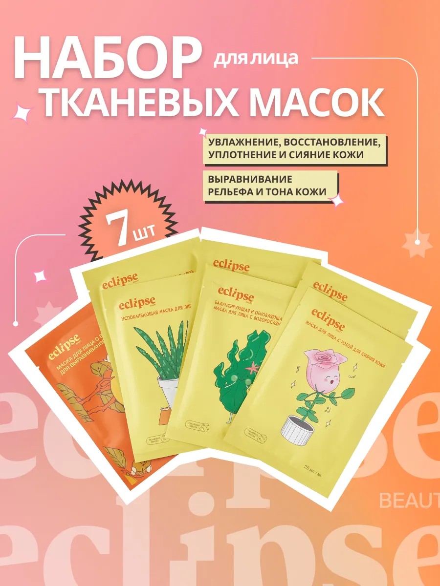 ECLIPSE beauty Маски для лица тканевые уходовые увлажняющие, набор 7 шт