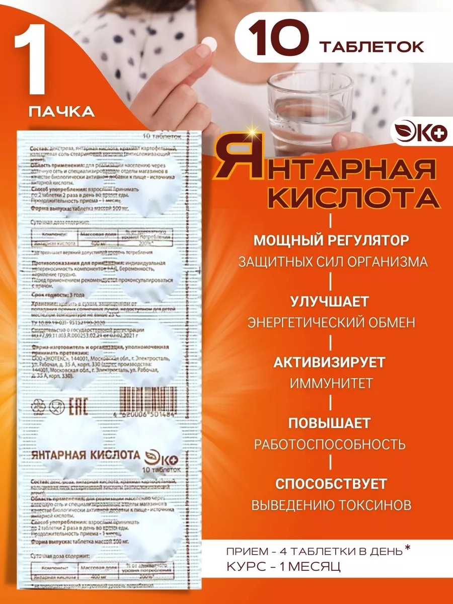 ЭКО Янтарная кислота БАД 10 таблеток 1 упаковка