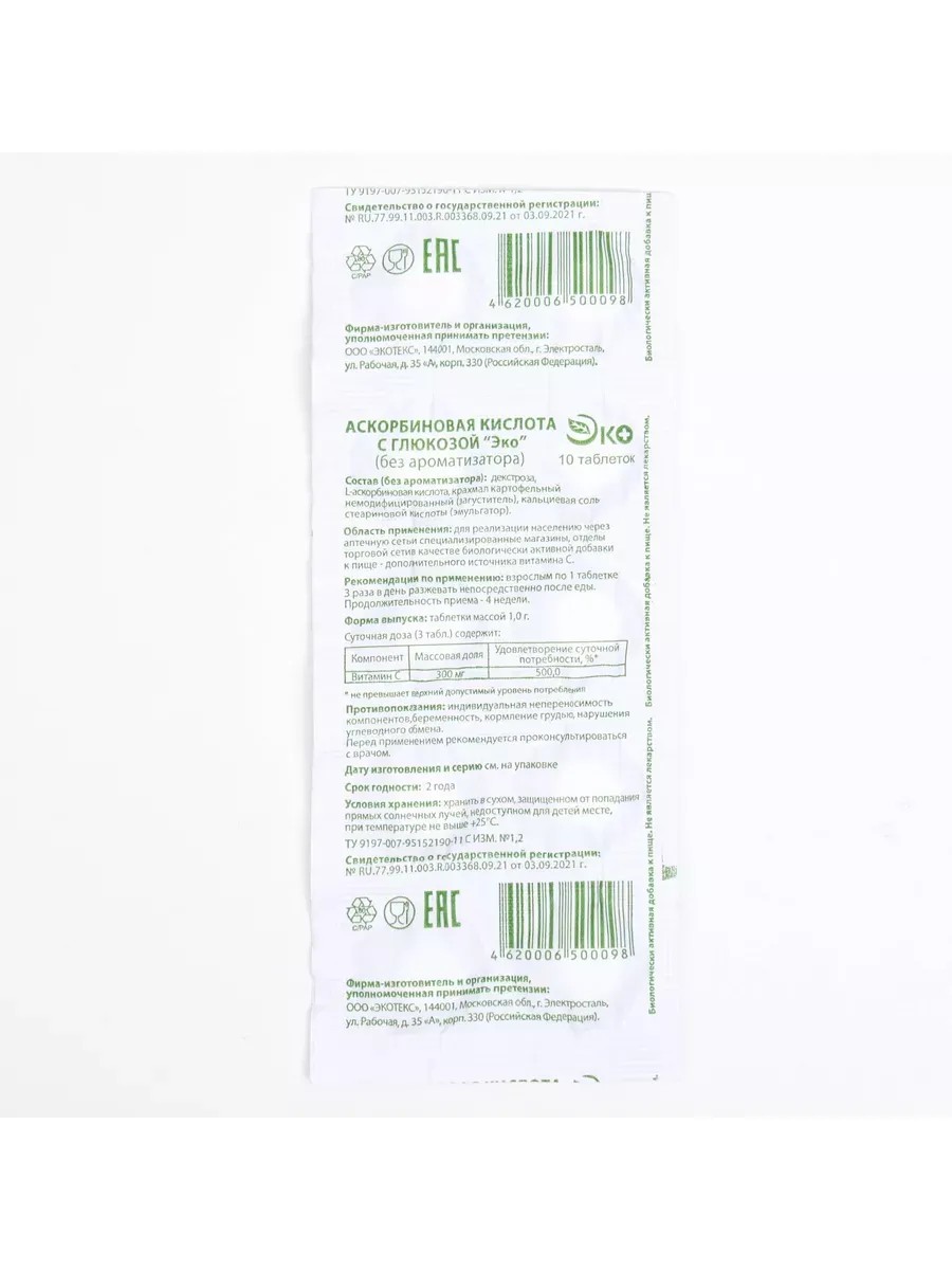 ЭКО Аскорбиновая кислота с глюкозой 200 таблеток массой 1 г