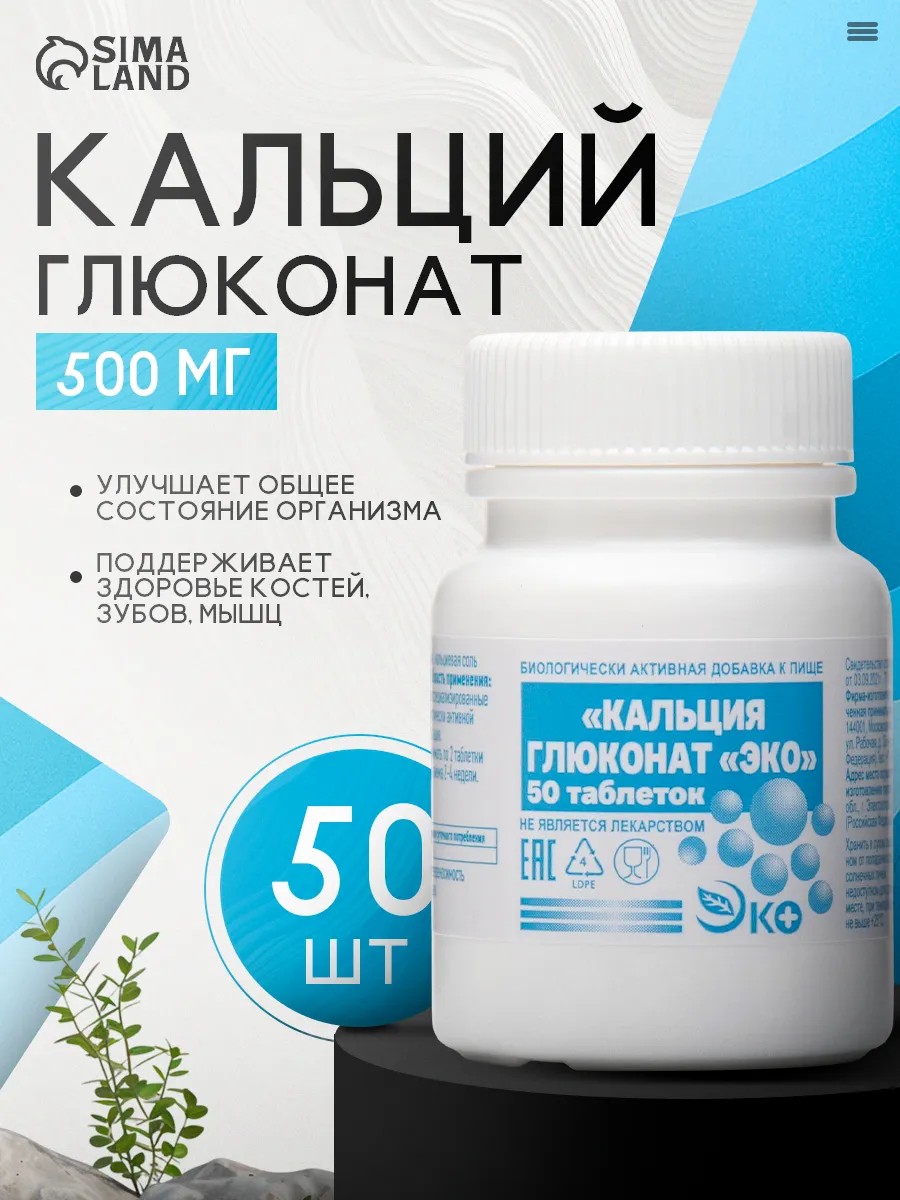 | Комплектация | Кальция глюконат Экотекс 50 таблеток по 05 г |