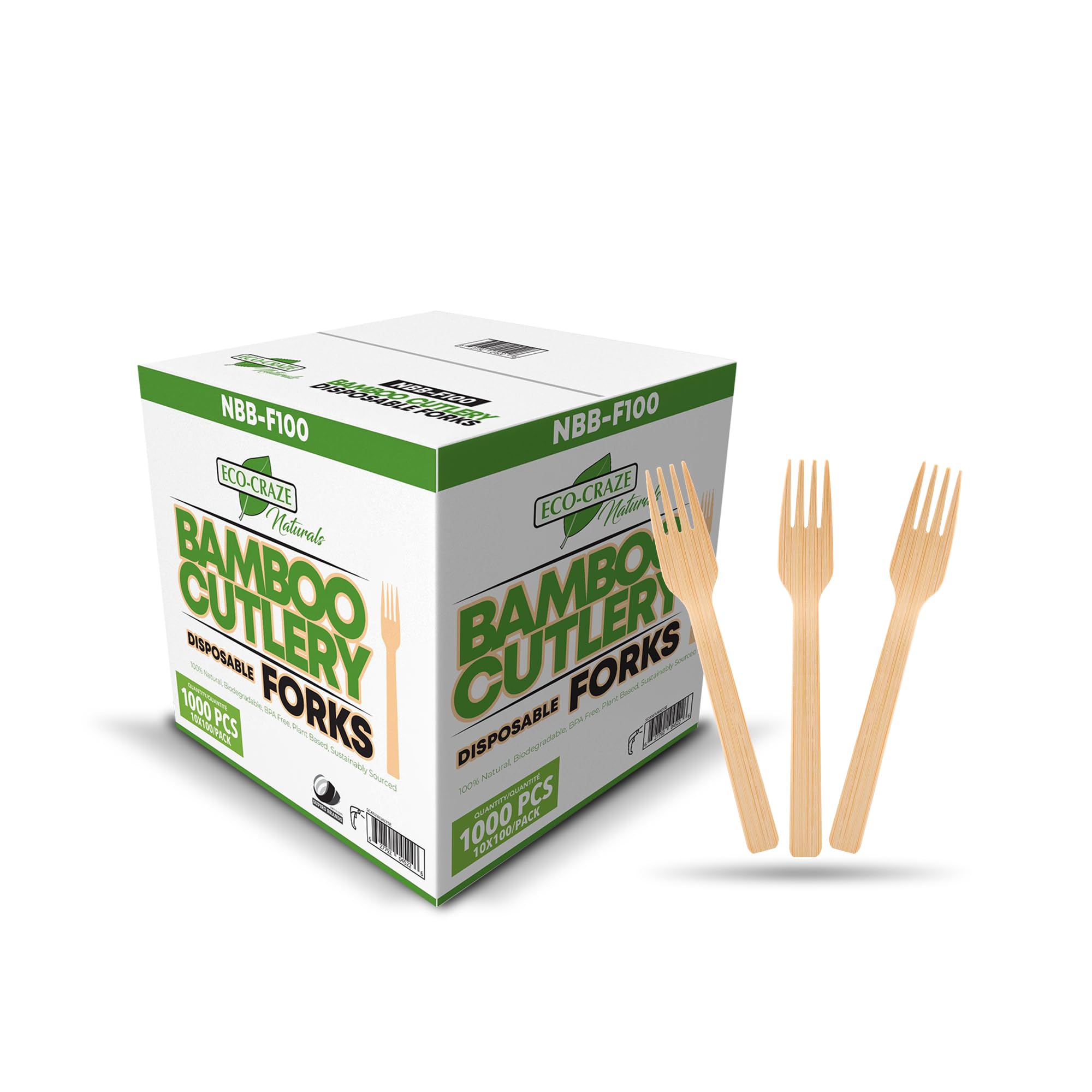 Eco-Craze provides high-quality bamboo disposable products, assured that you are providing all natural and organic tableware for family and friends, ideal for camping, picnics, parties, barbecue, and other catering activities.WIDE USAGE: These wonderful disposable bamboo forks are a perfect choice for parties and events such as weddings, birthdays, holidays, BBQs, beaches, outdoor parties, picnics, camping and much more. Simply throw these utensils away, eliminating the need for an extensive cleanup. 100 NATURAL BIODEGRADABLE: These forks are 100 natural and designed for one-time use. These bamboo forks can be used commercially, without the need to send the used compostable fork to the garbage buried yard. It is an excellent alternative to traditional wood or plastic. STURDY: Smooth bamboo forks, durable with clean edges that replicate a traditional eating utensil. Our bamboo forks fit into any decor, indoors or outdoors, commercial or home use. These bamboo forks are good tools to carry around, easy to put in your purse or lunch bag. PREMIUM QUALITY: Eco-Craze provides high-quality bamboo disposable products, assured that you are providing all natural and organic tableware for family and friends, ideal for camping, picnics, parties, barbecue, and other catering activities. VALUE PACK: 1000 packs, each package comes with 10 sets of 100 disposable bamboo forks, containing no harmful chemicals, BPA free for the utmost convenience. This is a great addition to any restaurant, grab-and-go retail stand, office breakroom, or school cafeteria. Use these disposable forks to enjoy various cuisines.