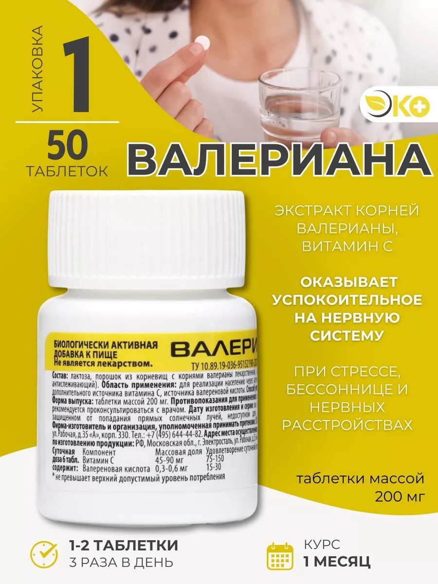 ЭКО Валериана с пустырником для спокойствия в таблетках 50 штук