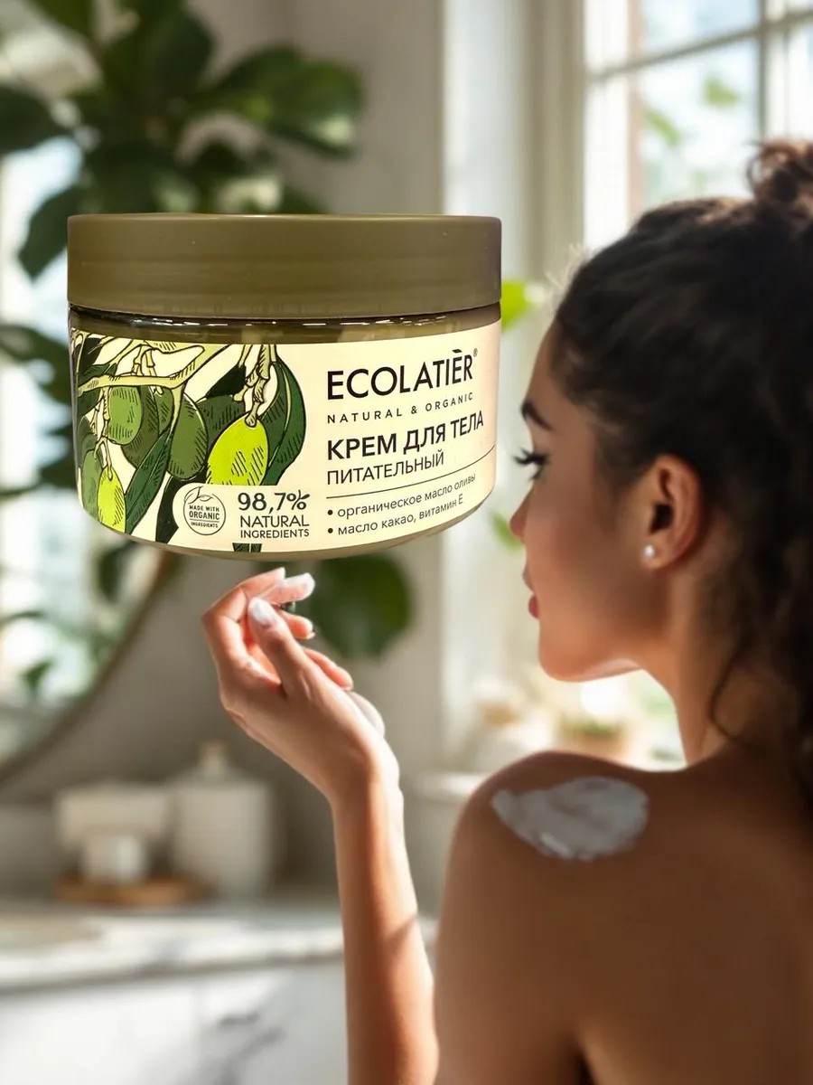 ECOLATIER Green Organic Olive Nourishing Body Cream is exceptionally rich in fatty acids, amino acids, and vitamins. Easy to apply, it deeply moisturizes dehydrated skin and restores the cellular hydrolipid balance. Organic olive oil is a premium product. All tree care, fruit harvesting, and oil production procedures are performed manually. Olive oil has a balanced composition, containing minerals, vitamins, and saturated fatty acids that help fight aging. Cosmetics containing olive oil saturate the skin and hair with nutrients in a biologically available form, maintaining the tone and youthfulness of the face and body.