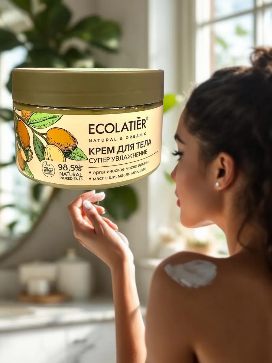 Крем для тела ECOLATIER Organic argana Супер увлажнение необычайно богат жирными кислотами, аминокислотами и витаминами. Он легко наносится, глубоко увлажняет обезвоженную кожу и восстанавливает гидро-липидный баланс клеток. Органическое масло арганы, полученное методом холодного отжима плодов арганового дерева, благодаря высокому содержанию ненасыщенных жирных кислот и витамина Е, оказывает мгновенный увлажняющий, противовоспалительный и питательный эффект, поддерживая гидро-липидный баланс. Восстанавливает защиту верхнего слоя эпидермиса, глубоко питает клетки на уровне дермы и повышает упругость кожных покровов.