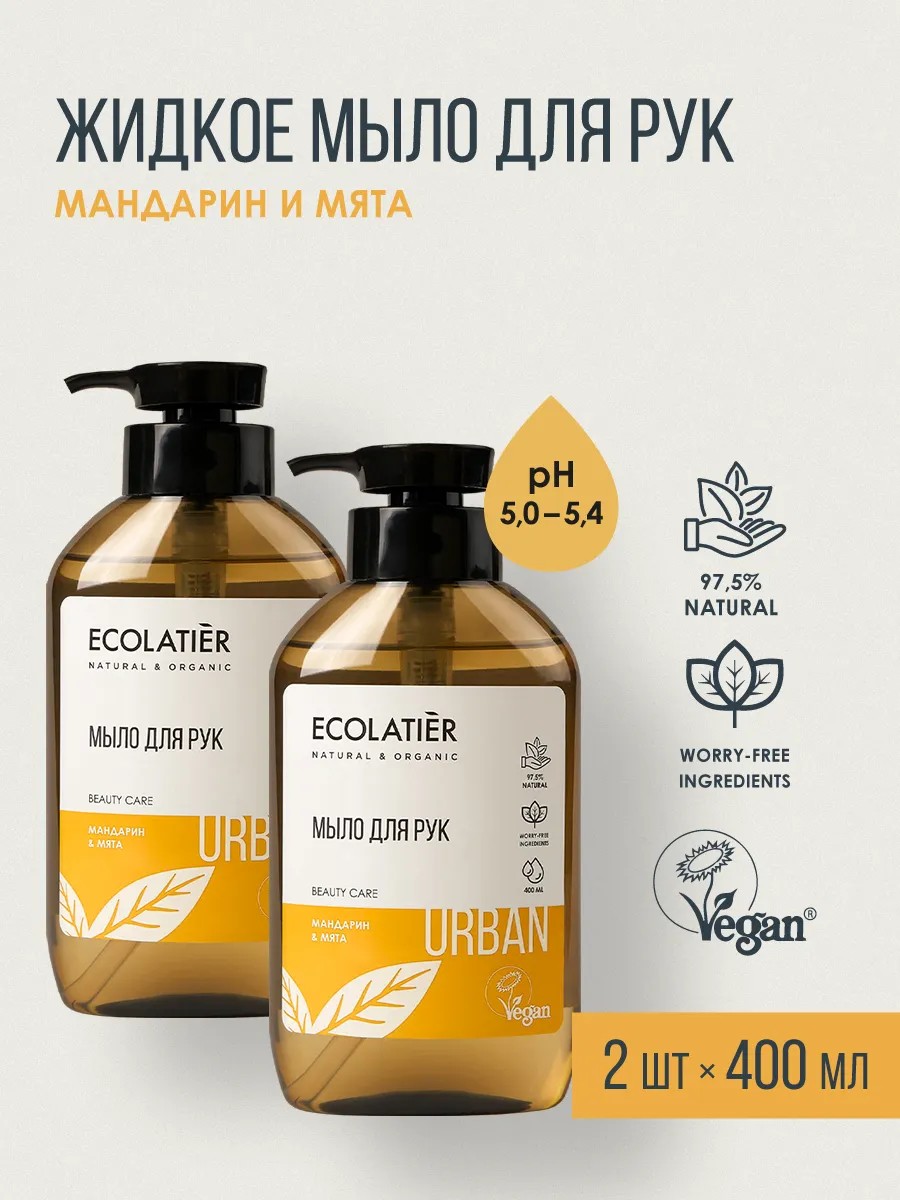 Ecolatier жидкое мыло для рук мандарин & мята, 400 мл, 2 шт