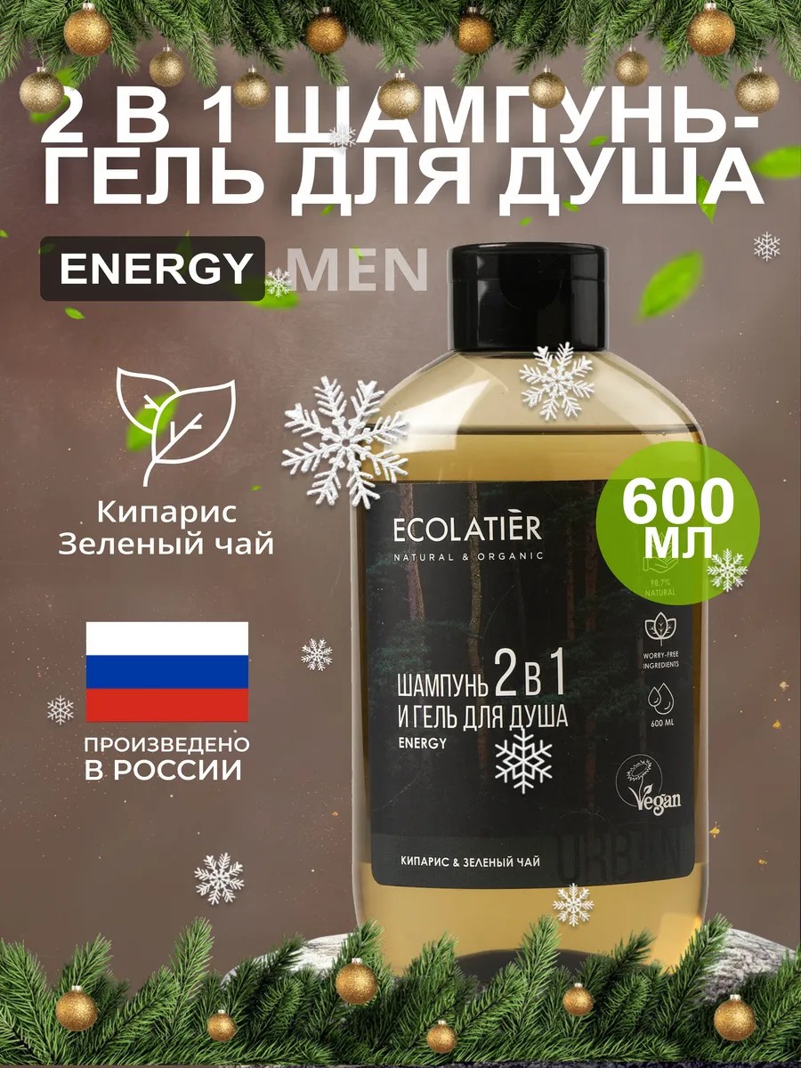 Мужской гель для душа и шампунь 2 в 1 ECOLATIER URBAN - это прекрасное средство для бережного очищения волос и тела. Благодаря входящим в состав натуральным маслам и экстрактам, заботится о волосах и питает кожу. Дарит ощущение бодрости и свежести на целый день, даже в условиях городской суеты.Продукт содержит более 97% ингредиентов натурального происхождения.АКТИВНЫЕ ИНГРЕДИЕНТЫ:Экстракт зеленого чая является природным антисептиком, пробуждает кожу, улучшает обменные процессы в клетках, тонизирует и увлажняет, благодаря чему она выглядит красивой и ухоженной.Экстракт кипариса обладает прекрасным освежающим и дезодорирующим действием. Дает хороший тонизирующий и антистрессовый эффект после занятий спортом или активного рабочего дня . Помогает взбодриться, способствует снятию нервного напряжения.Эффект: приятное ощущение свежести и бодрости на весь день.