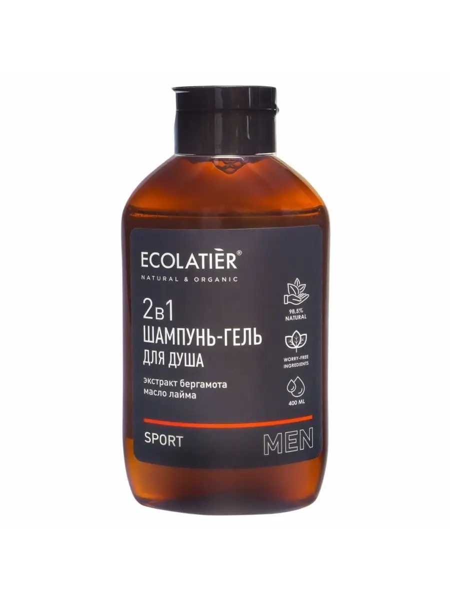 Ecolatier Men Shampoo and Shower Gel 2 in 1 Sport 400ml. Shampoo and shower gel 2 in 1 Sport ECOLATIER MEN is an ideal product for effective cleansing of hair and body after sports or an active day at work. It has a moisturizing, softening and toning effect, foams well and is easy to rinse. Gives a boost of vivacity and energy for the whole day. Contains more than 98% ingredients of natural origin. Lime oil normalizes the sebaceous glands, tones the skin, makes it more elastic and fresh. Bergamot extract helps strengthen hair follicles, reduces hair breakage and prevents hair thinning, has a moisturizing and refreshing effect on the skin. Application: Apply to damp skin and hair, lather and rinse with warm water. For external use. Ingredients: Aqua; Sodium Coco-Sulfate; Cocamidopropyl Betaine; Decyl Glucoside; Sodium Chloride; Glycerin (plant-derived); Citrus Aurantium Bergamia Fruit Extract (bergamot extract); Hydroxypropyl Guar Hydroxypropyltrimonium Chloride; Benzyl Alcohol; Citrus Aurantifolia Fruit Oil (lime oil); Potassium Sorbate; Sodium Benzoate; Citric Acid; Parfum; Limonene.