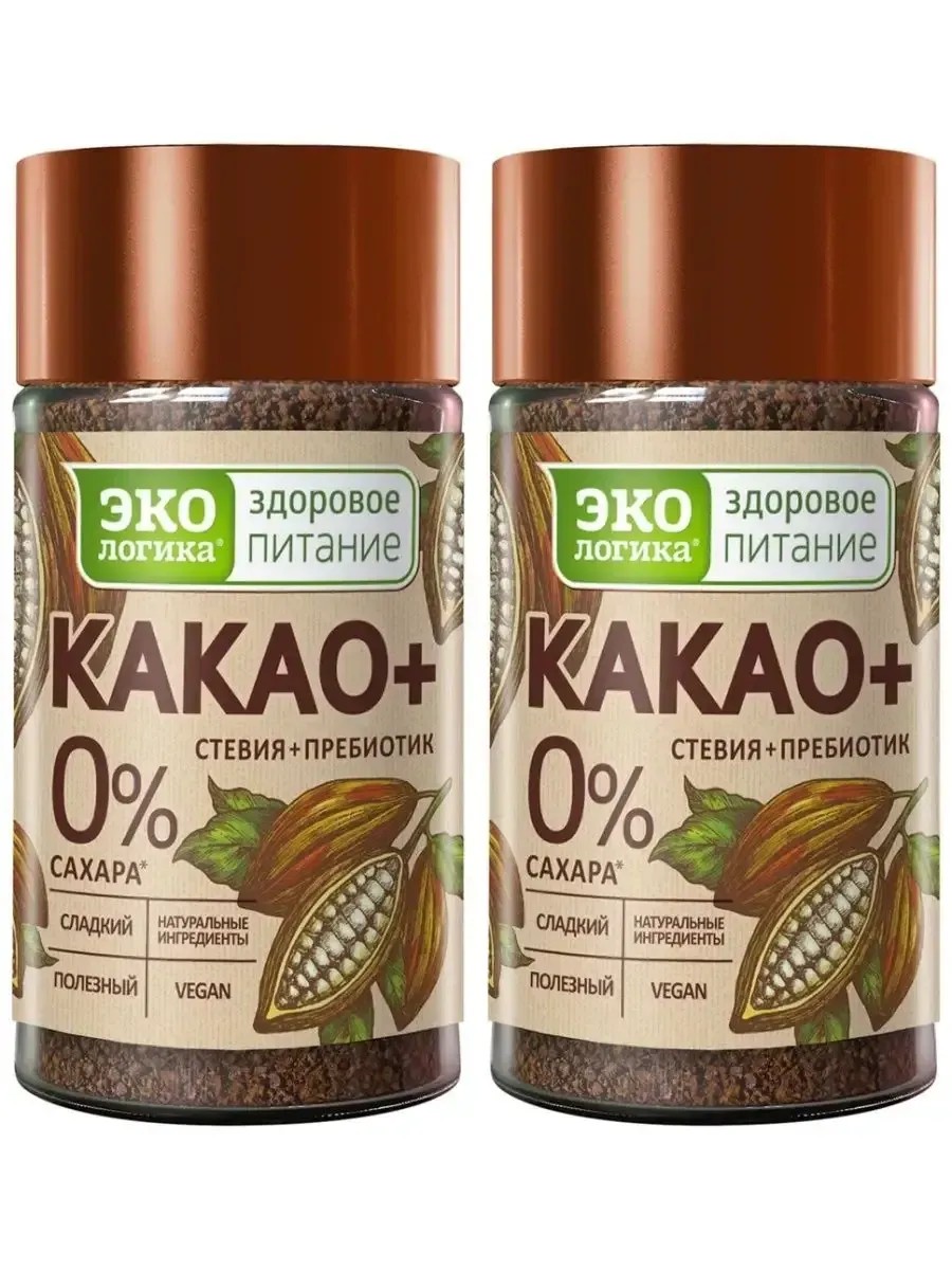 ЭкоЛогика Какао "Какао плюс" растворимый 125 грамм 2 штуки(БЕЗ САХАРА)
