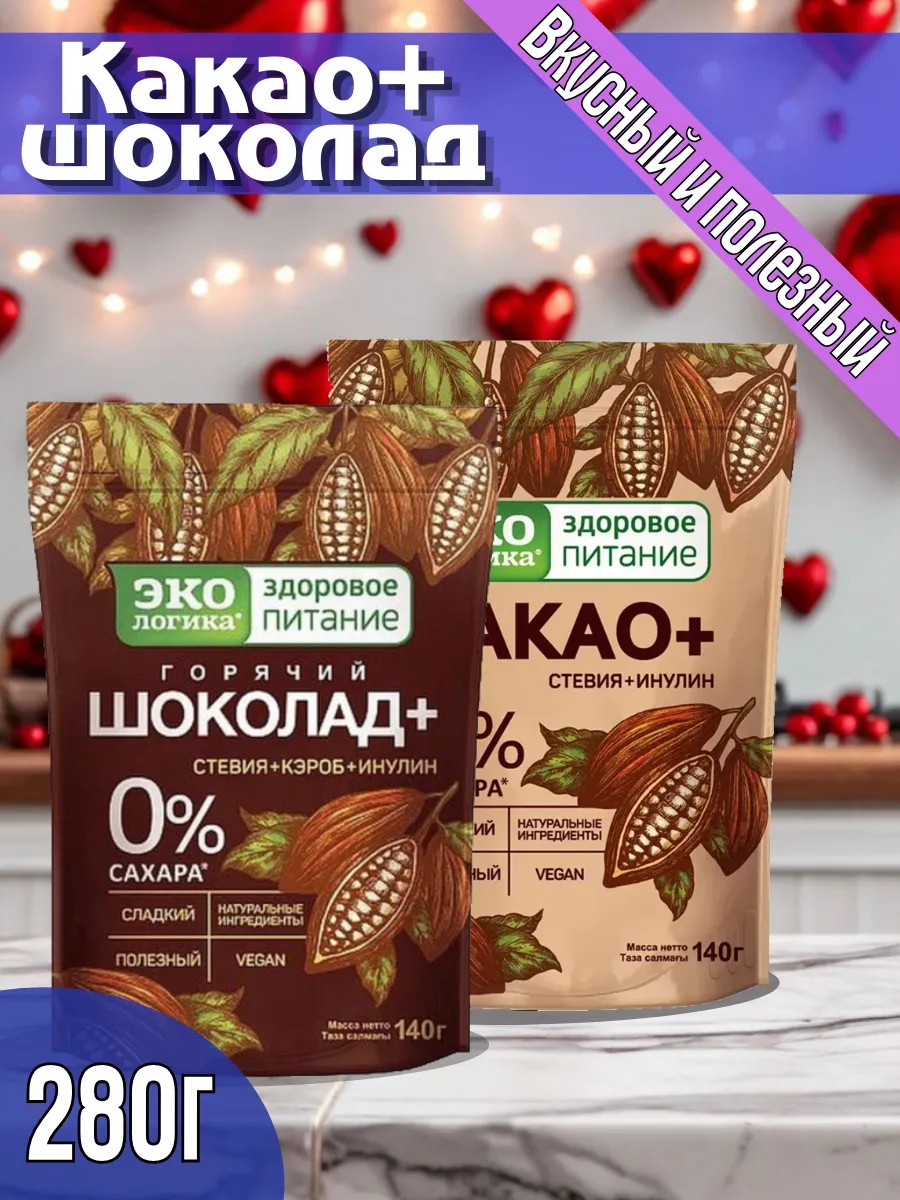 ЭкоЛогика Какао + Горячий шоколад +, 2 шт по 140 г