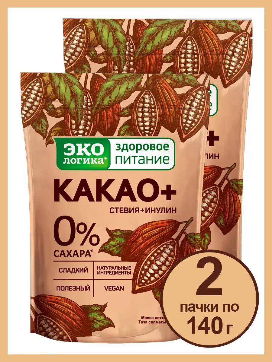 ЭкоЛогика Какао Плюс растворимый без сахара 140 гр, 2 шт