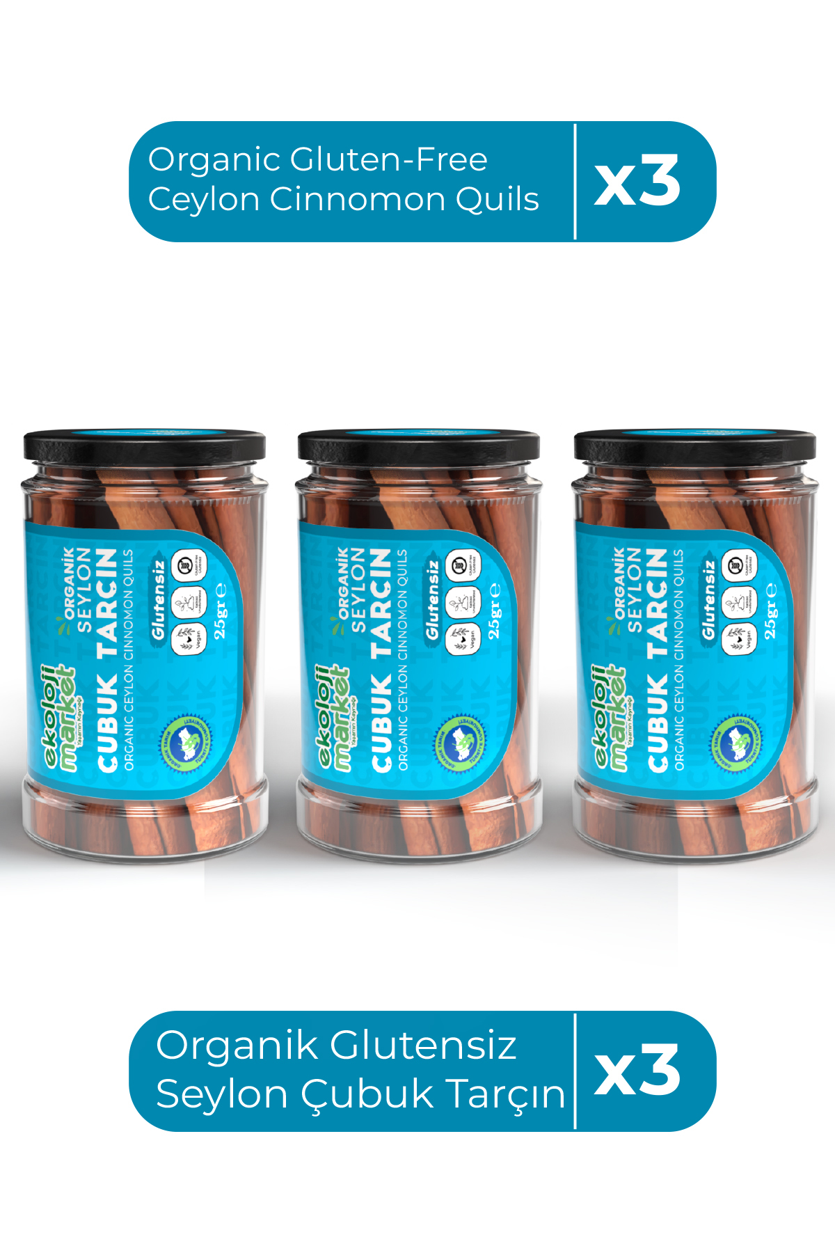 EKOLOJIMARKET GLUTEN-FREE ORGANIC CEYLON CINNAMON QUILS 25 Gr x3