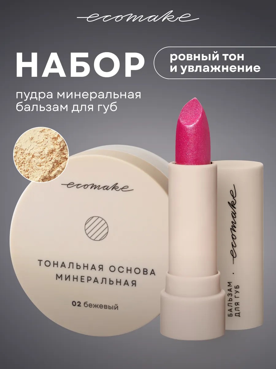 Ecomake Пудра для лица минеральная и бальзам для губ