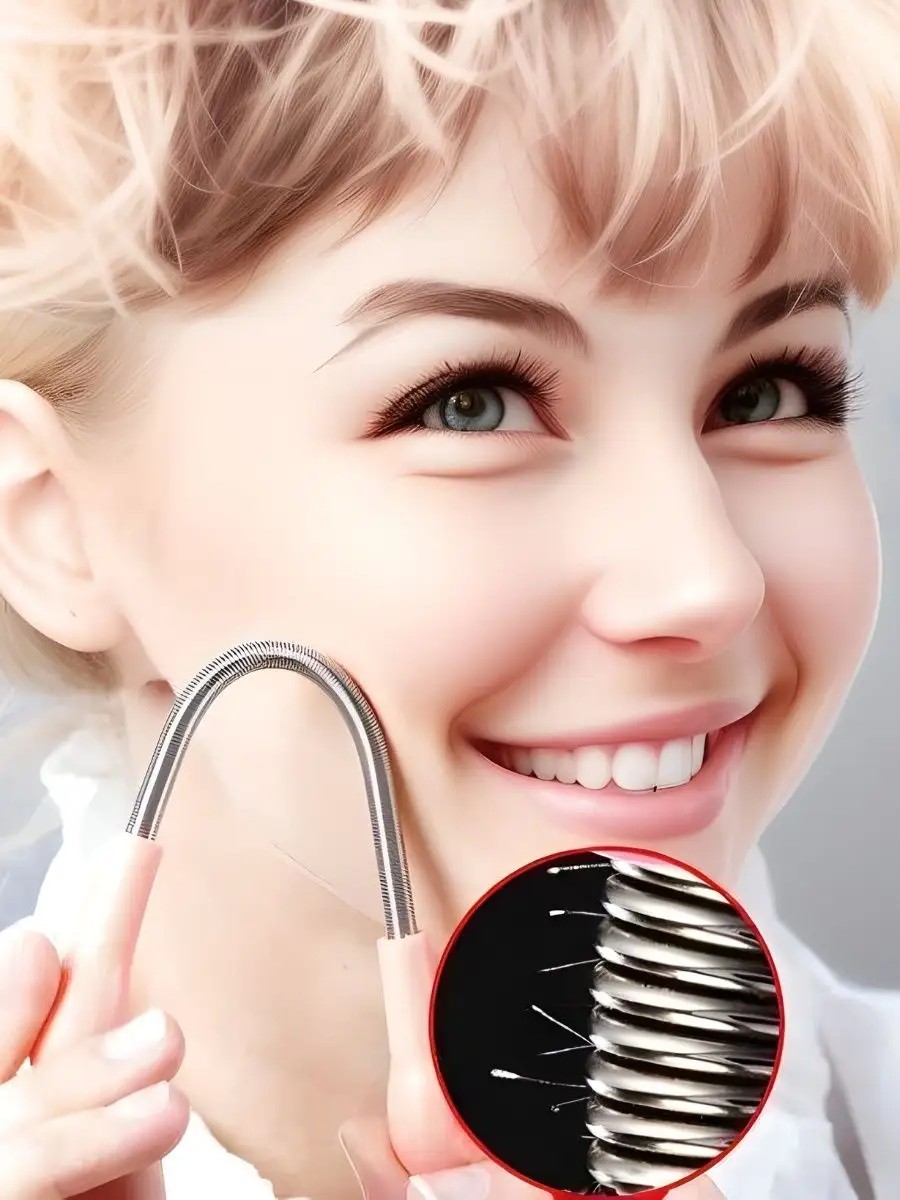 How to use: To effectively remove vellus hair, hold the epilator by both ends, bend it into an inverted "U" shape, and then point the spring side toward your face so the metal part slides against the hair growth. Rotate it – and appreciate the results! Most often, to completely remove all the fluff, you need to pass the tool over each treatment area several times – however, this will not be painful in the vast majority of cases. To ensure the tool removes everything thoroughly, try puffing out your cheeks and lips while working your skin – this will help the spring catch more hairs. The more you use it, the better results you will get with each subsequent use. After the procedure, treat the skin with a mild antiseptic. How it works: As it rotates over the skin, the flexible wand catches all the hairs along the way, even those that are invisible to the naked eye. They are trapped between the metal spirals. Thicker, stronger hairs (not vellus) will require more time to remove. Suitable for cheeks, lips, and chin. This easy-to-use device will provide long-lasting results when removing hair from your face and chin. Use it as often as you like. Remove facial hair easily and effectively with the new spring-loaded epilator! The handheld spring-loaded epilator is an alternative to a depilatory or wax strip. This waterproof epilator can be used at home or on the go. Don't wait, buy a spring-loaded epilator now!