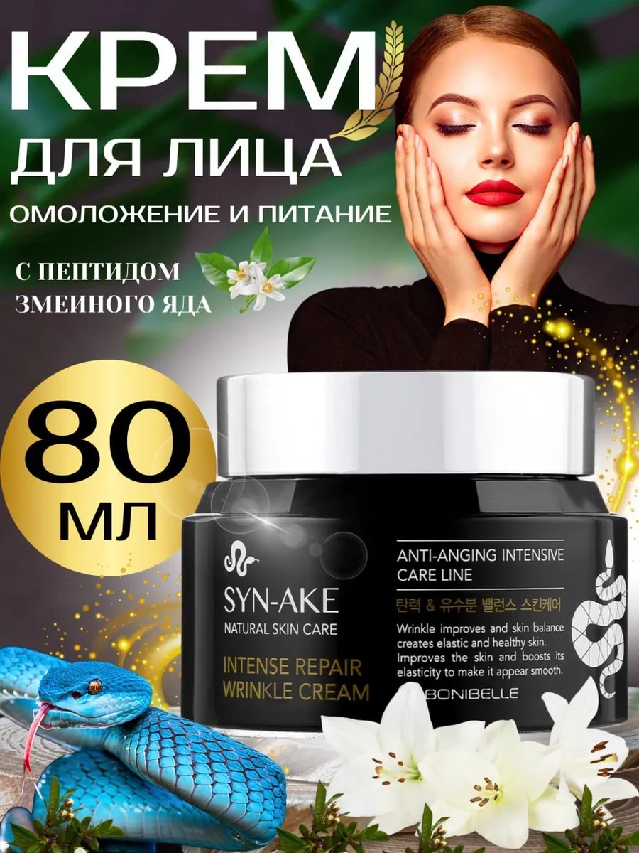 Original Korean cosmetics: rejuvenating, moisturizing, and anti-wrinkle face cream for women and men. This anti-aging cream smoothes age-related vertical and horizontal wrinkles on the face, forehead, neck, and décolleté, providing a lifting effect and refreshing the skin. This rejuvenating cream for deep wrinkles accelerates collagen synthesis with hyaluronic acid and an under-eye cream with snake venom.