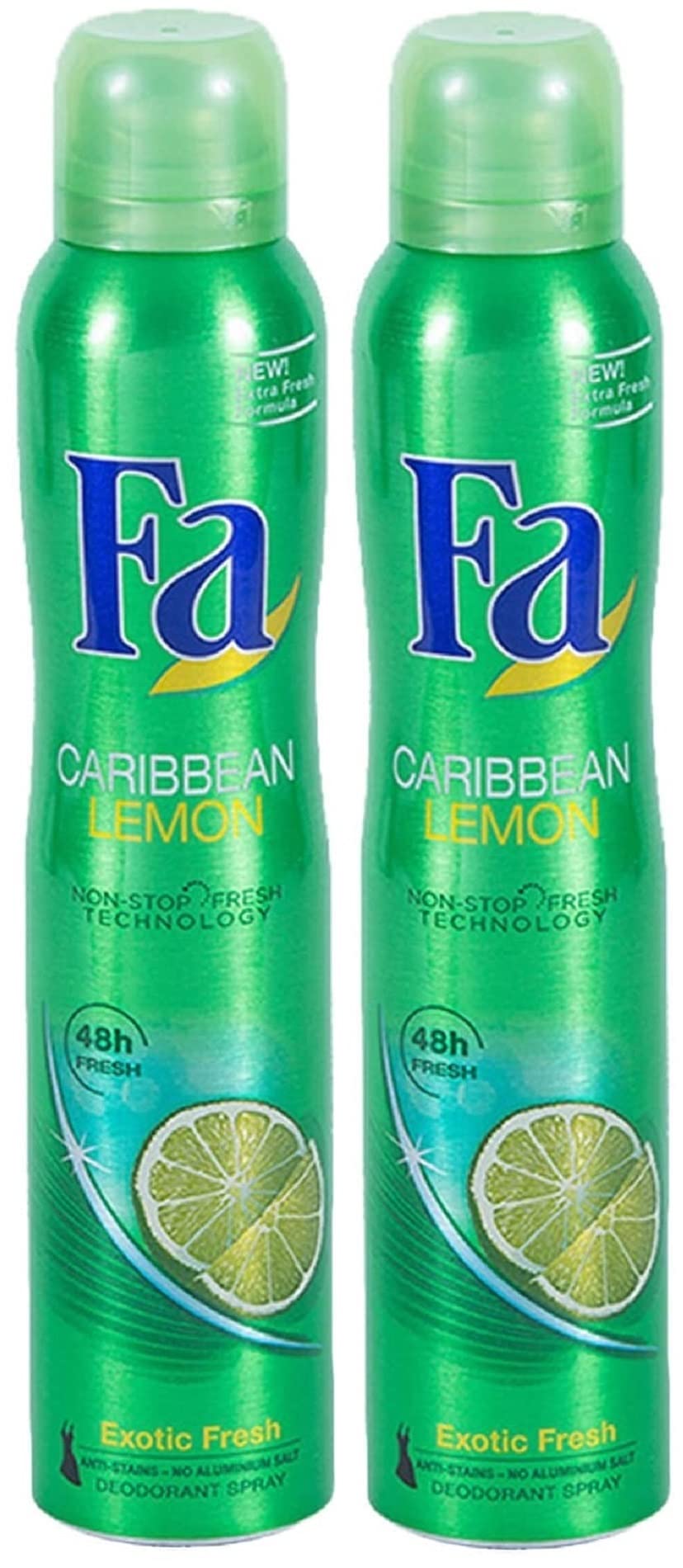 Economy size 200ml/6.7 ounces Fa 48h Deodorant Spray for Men & Women (2 Packs) (Caribbean Lemon) 6.7 Ounce