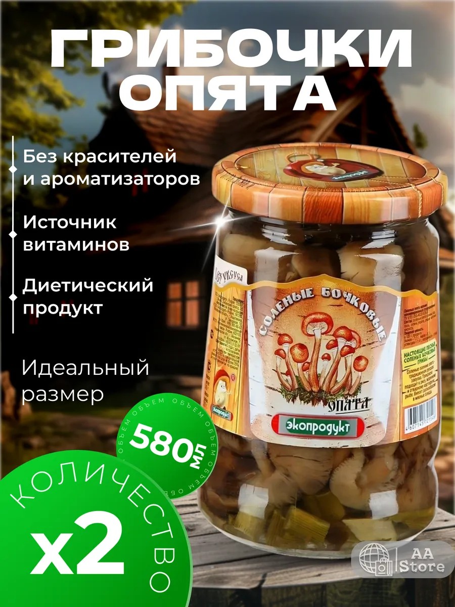 ЭкоПродукт Грибы соленые бочковые опята 2шт по 580мл