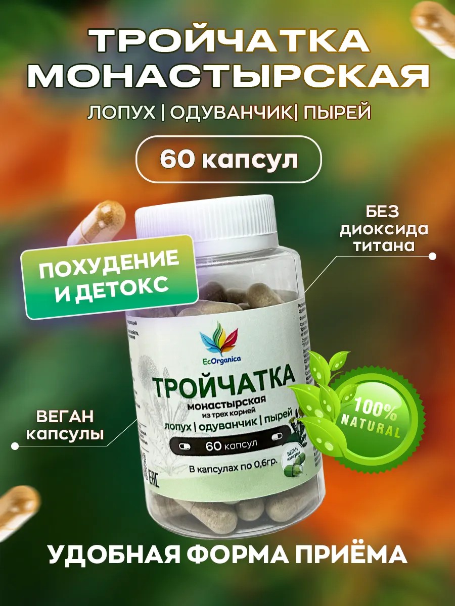 Ecorganica Тройчатка для детокса 60 капсул одуванчик, лопух, пырей