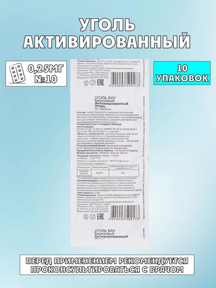 | Комплектация | Активированный уголь 10таб - 10уп. |