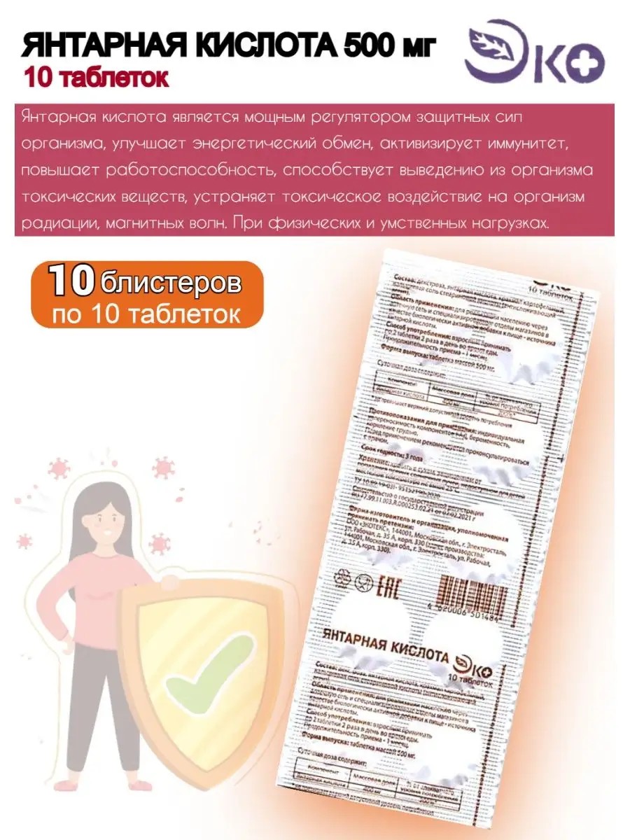 Экотекс Янтарная кислота БАД 10 таблеток 10 шт.