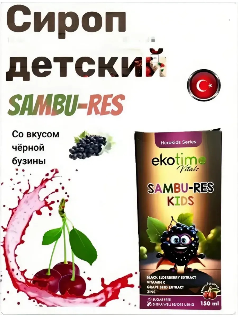 ekotime Детский сироп Sambu-res kids черная бузина 150ml Турция