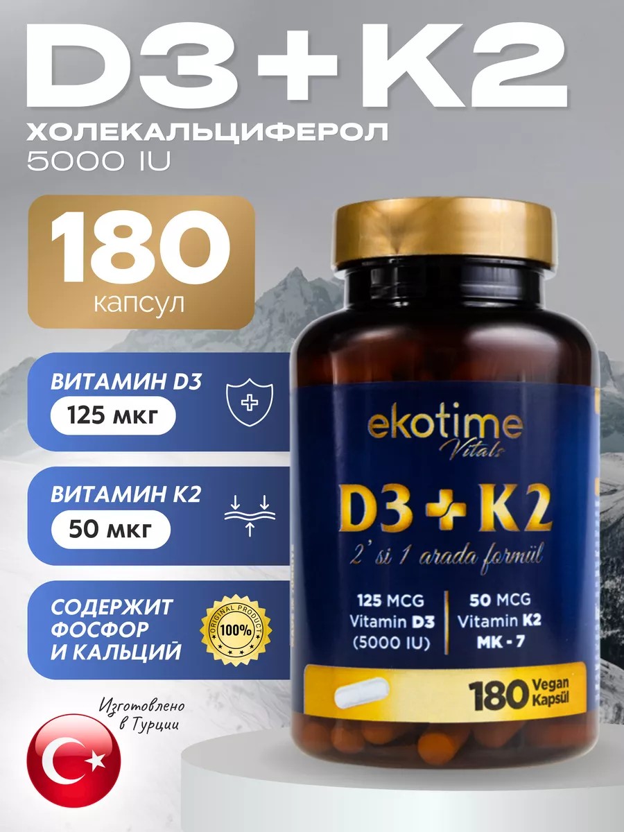 | Комплектация | Комплекс витаминов D3 K2 Ekotime 180 капсул - 1 уп |