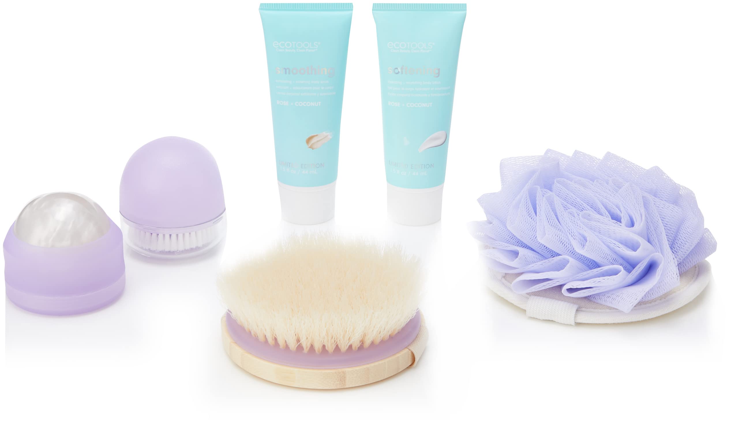 | Holiday Gift Assortment: | • 6 Piece Gift Set • Kit Includes: (1) Dry Body Brush, (1) Deep Cleansing Facial Brush, (1) EcoPouf Dual Cleansing Pad, (1) Body Roller, (1) Body Scrub, and (1) Body Lotion • The Limited Edition EcoTools Just Glow With It 6 Piece Full Body Wellness Set is best for full body cleansing and improving circulation with body and facial brushes, body rollers, cleansing pads, lotion, and scrub | • 4 Piece Holiday Gift Set • Kit Includes: (1) Large Sponge, (1) Medium Sponge, (1) Small Sponge, and (1) Sponge Cleanser • EcoTools Better Blends Ahead Trio comes in three different sizes to give you a flawless complexion | • 7 Piece Holiday Gift Set • Kit Includes: (5) Eye Brushes, (1) Compact Mirror, and (1) Storage Cup • The ultimate kit to create a bold or natural eye look | • 5 Piece Holiday Gift Set • Kit Includes: (1) Angled Sculpt Brush Head, (1) Skin Complexion Brush Head , (1) Primer Application Brush Head, and (1) Green Interchangeable Handle • Blush and Glow with the EcoTools Interchangeable 4 piece makeup and skin care brush kit | • 6 Piece Gift Set • Kit Includes: (1) Sponge Blender, (4) Makeup Brushes, and (1) Makeup Brush and Sponge Cleansing Shampoo Packet • Gift set is perfect for creating a fresh, glowing look | • 10 Piece Gift Set • Kit Includes: (1) Ultimate Powder brush, (1) Spoolie brush, (1) Flat shadow brush, (1) Full shadow brush, (1) Precision blending brush, (1) Fresh perfecting blender, (1) Angled liner brush, (1) Airbrush concealer brush, (1) Micro blending brush, and (1) Classic foundation brush |